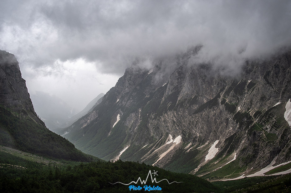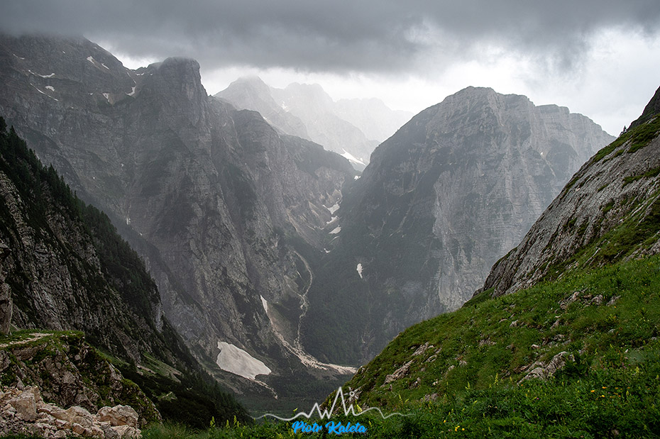 Luknja powitała nas wiatrem jakiego do tej pory doświadczyliśmy tylko w Karkonoszach. Prawie przewracał – serio 😐 Szybko chowamy się na zawietrzną i przyglądając się sąsiedniej dolinie znów mamy niedosyt w temacie widoków. Trzeba tu wrócić 😉 Ale tym razem raczej od strony doliny Sočy.