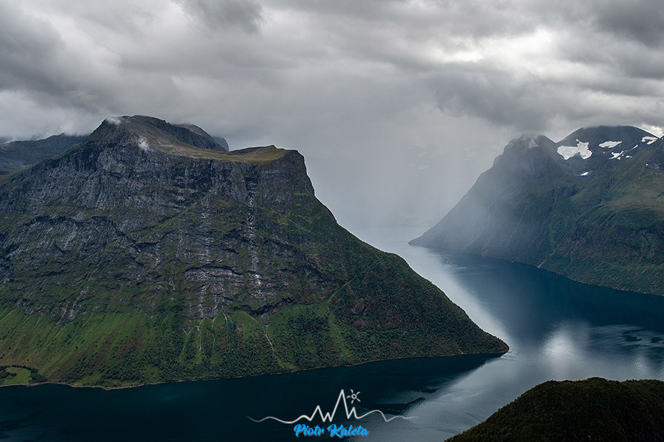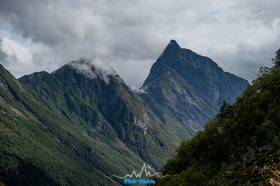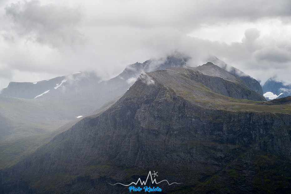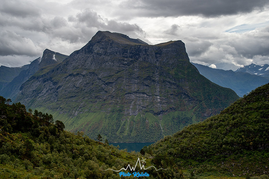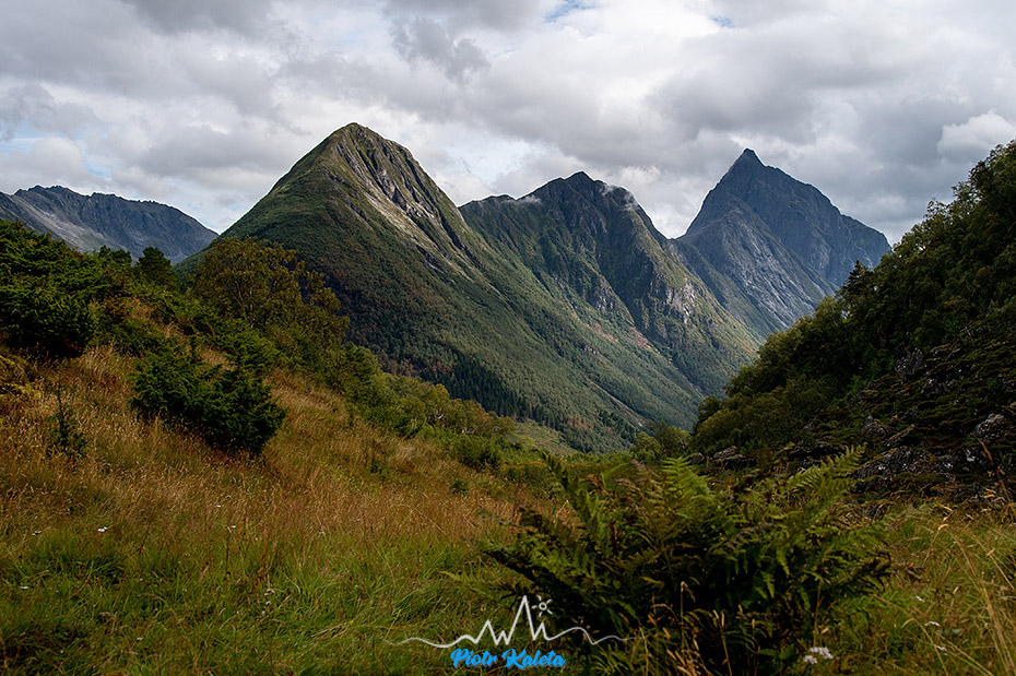 A to już widok na jeszcze inny zakątek fiordu: masywy Dalegubben (1344 m) i Holmshornet (1198 m).
