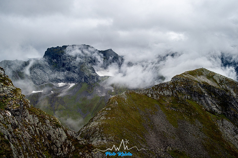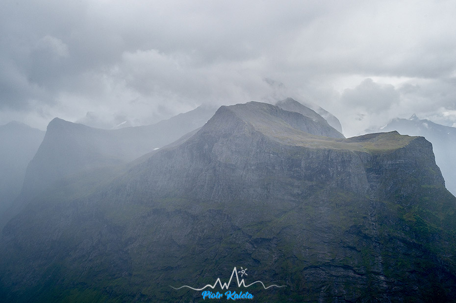 Masywna bryła Helghornet (1372 m) wyłania się stopniowo.