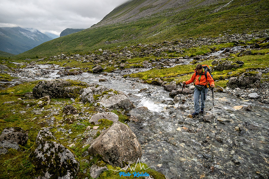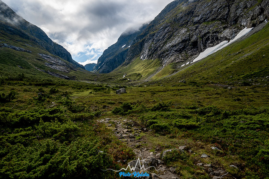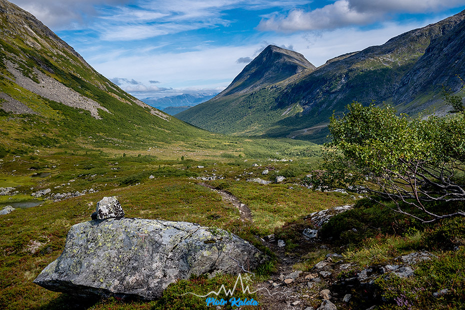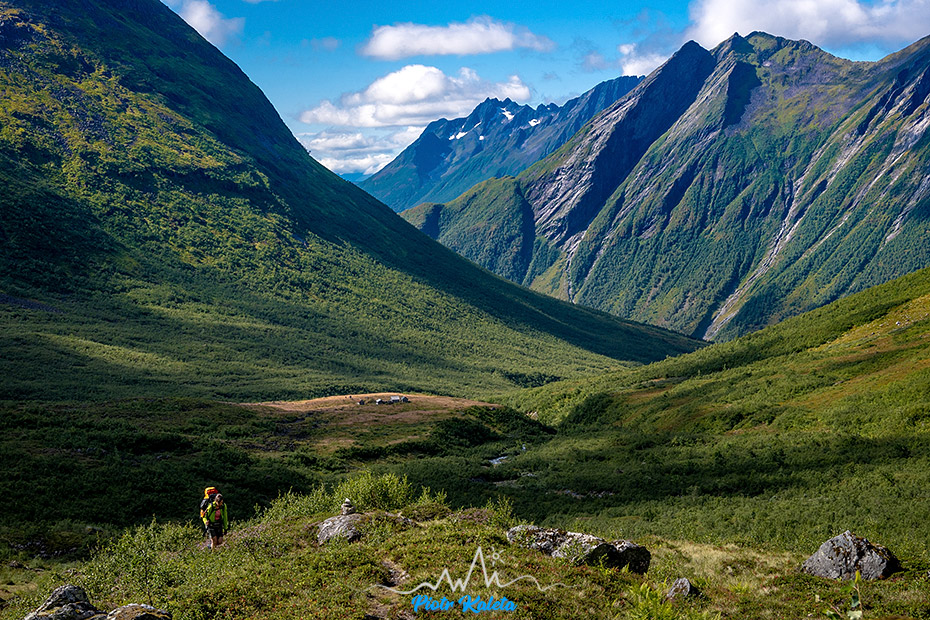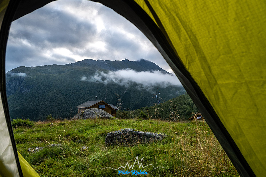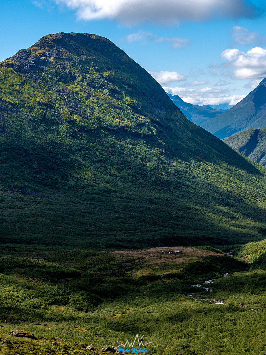 Gdzieś w tę dolinę prowadzi perćka na Råna (1586 m). Jakoś wcześniej maglując mapę tego półwyspu nie zwróciliśmy na nią uwagi 🙁 Prognoza pogody obiecuje jutro załamanie pogody, więc jest to okazja na dzień restu ale niestety też już początek drogi powrotnej. Pozostaje niedosyt i wewnętrzna obietnica, że jeżeli tylko wylądujemy w tej okolicy to zdecydowanie trzeba sprawdzić co się tam kryje.