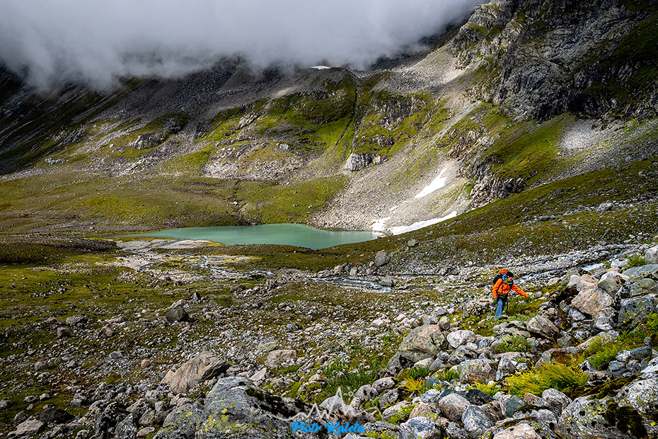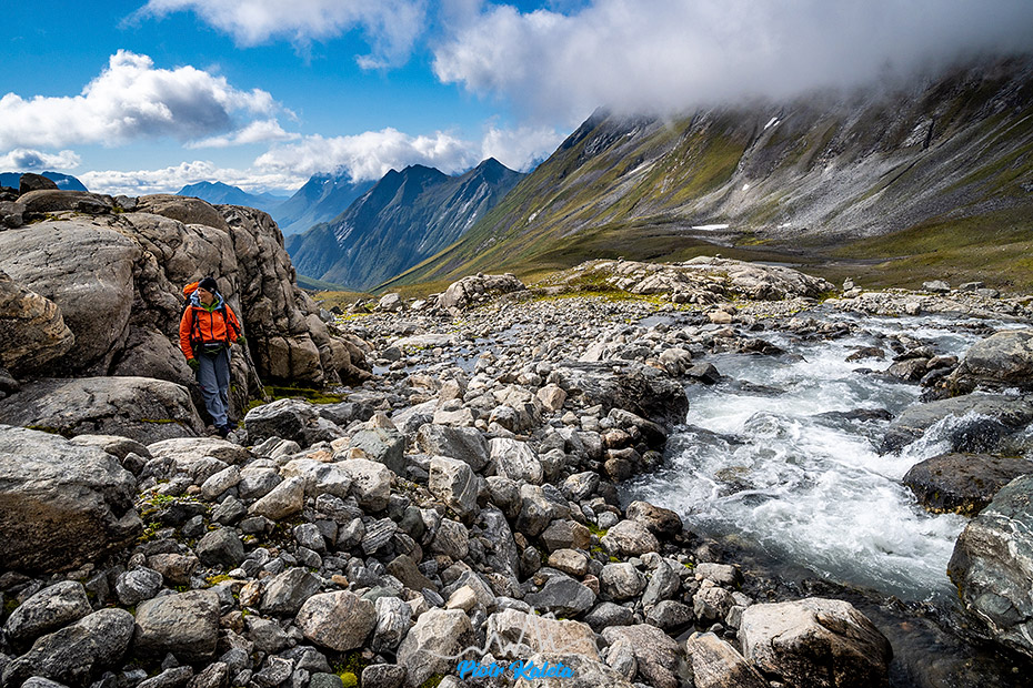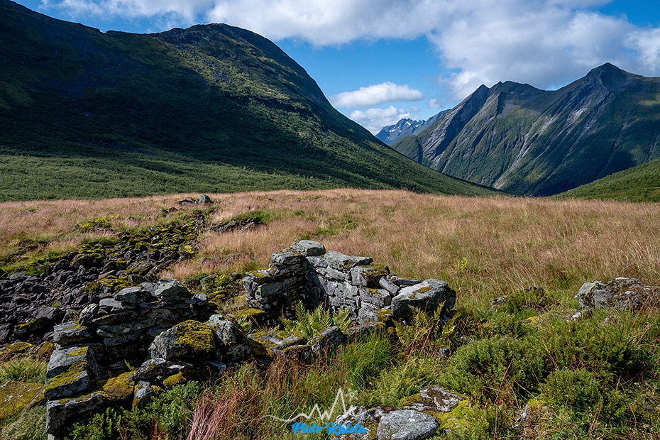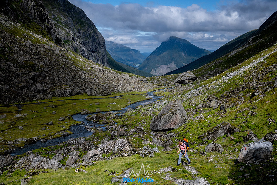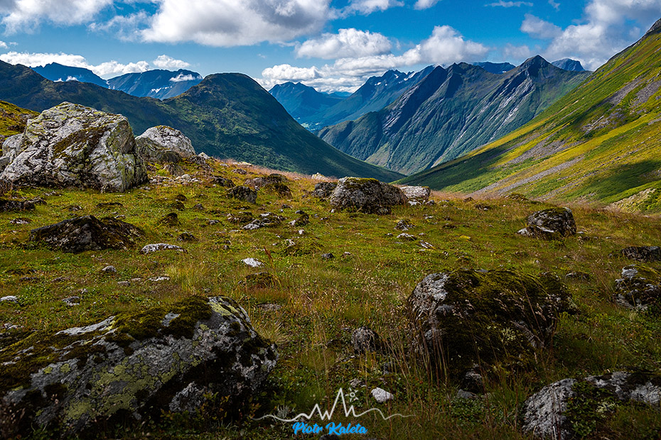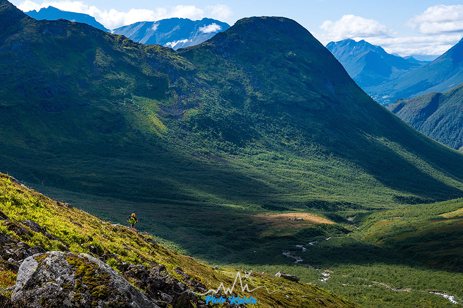 Gdzieś w tę dolinę prowadzi perćka na Råna (1586 m). Jakoś wcześniej maglując mapę tego półwyspu nie zwróciliśmy na nią uwagi 🙁 Prognoza pogody obiecuje jutro załamanie pogody, więc jest to okazja na dzień restu ale niestety też już początek drogi powrotnej. Pozostaje niedosyt i wewnętrzna obietnica, że jeżeli tylko wylądujemy w tej okolicy to zdecydowanie trzeba sprawdzić co się tam kryje.