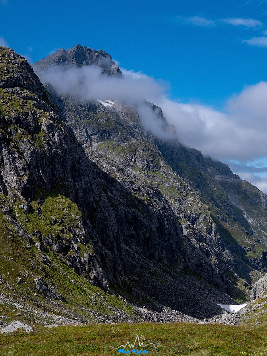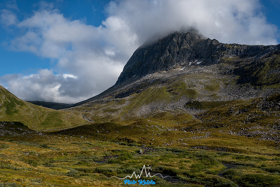 Stålberghornet (1284 m) jeszcze w chmurach.
