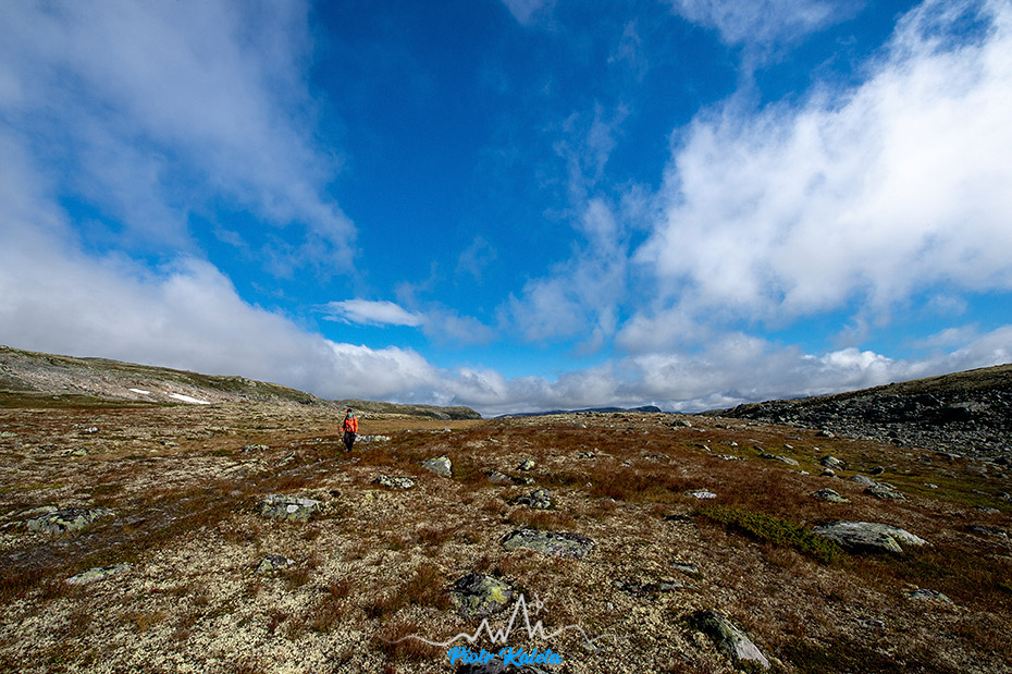 Ostatecznie jednak Hallingskarvet poczeka a my postanawiamy sprawdzić pustkowia na północ od niego. By uprościć logistykę decydujemy się na trasę zaczynająca się i kończąca przy krajówce nr 52. O powrotnego stopa do Traficzki będę się martwić później. Teraz ważniejsze by się nieco rozgrzać bo poranek jest wietrzny i chłodny.