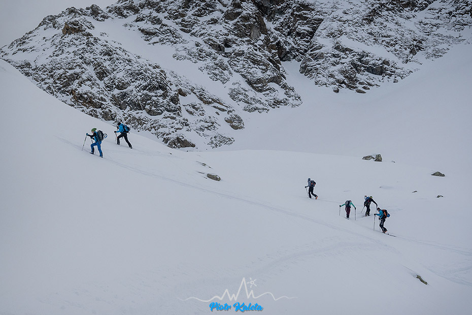 Dziś nie kończymy topograficznie ale na najfajniej ośnieżonym wzniesieniu niedaleko przełęczy. Dla formalności – z czwórki lokalsów weszła na nią tylko jedna osoba, reszta wycofała się przed końcowymi trudnościami.