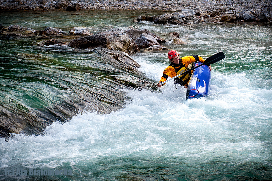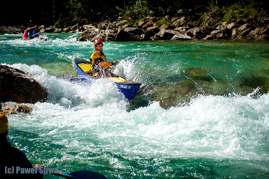Salza – pięknie turkusowa, słoneczna, jak na górską rzekę relatywnie ciepła, słowem – korzystająca ze wszystkich sposobów jakimi tylko może aby zachęcić do powrotu na nią 🙂