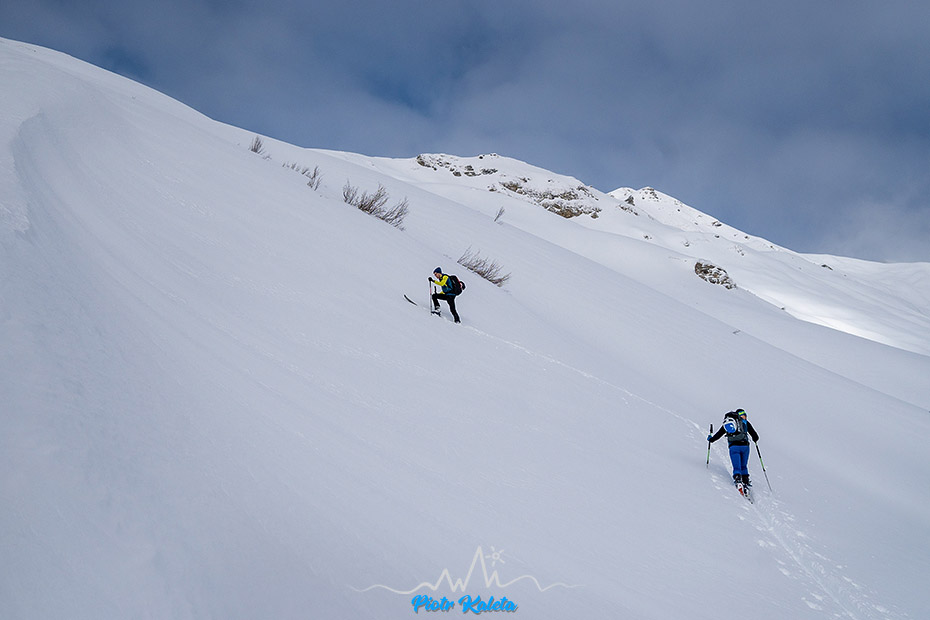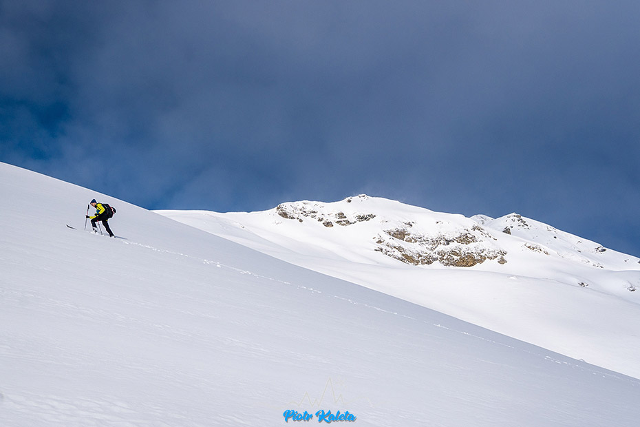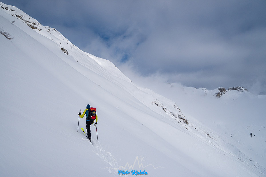 Korzystając z naszych śladów dochodzi do nas jakiś lokals. Mijając nas by się przepiąć ciut wyżej nawet nie rzuca słowa podziękowania za ślad jaki mu zostawiliśmy : (