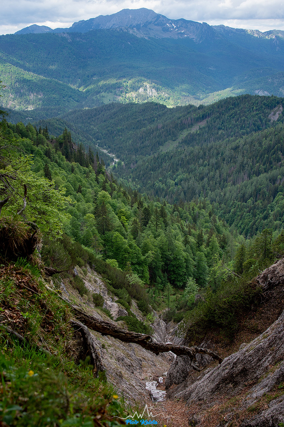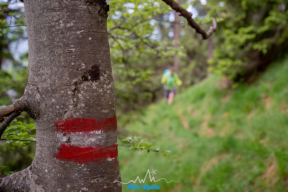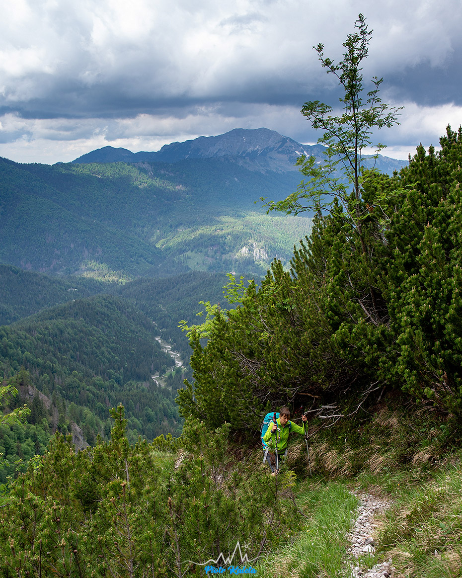 Tak się złożyło, że nad naszym kampingiem górowała dość symetryczna piramida Kleiner Hochstadl (1835 m), a w Traficzce mieliśmy spakowane treki, kijki i plecaki. No to wio: o 11:00 kamping znika już gdzieś w lesie. Na dwójkę turystów trafiam tylko w okolicy przełączki będącej najniższym łącznikiem między naszą a doliną którą chcieliśmy dalej podchodzić. Przez resztę dnia nie spotkamy już nikogo.