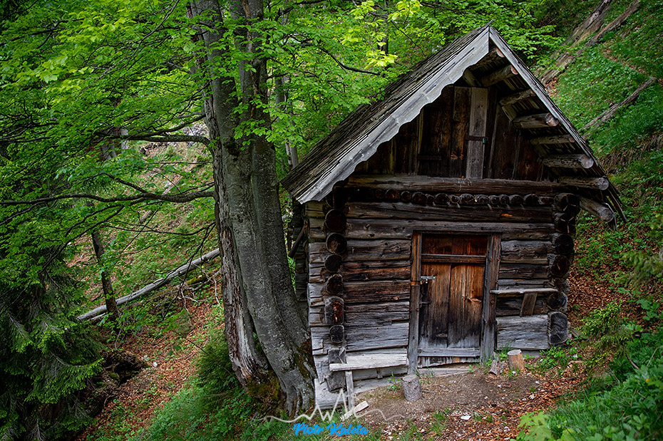 Nieco przed przełęczą trafiamy na taką – zamkniętą na dwie kłódki – chatkę.