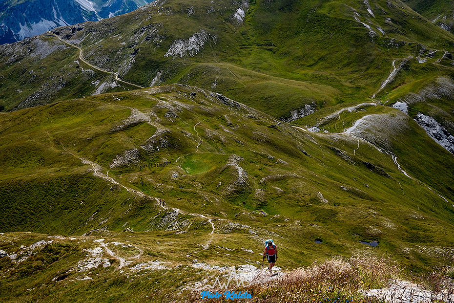 Do tego jeziorka jest relatywnie tłoczno. Powyżej niego spotykamy tylko jednego turystę – później okoliczne góry są już tylko nasze : ) I krów, bo tu dużo pastwisk.