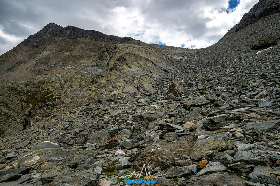 Dreieckspitze (3031 m) – niby można łatwo wejść na 3ooo-cznik ale z bliska to okrutna kupa gruzu : (