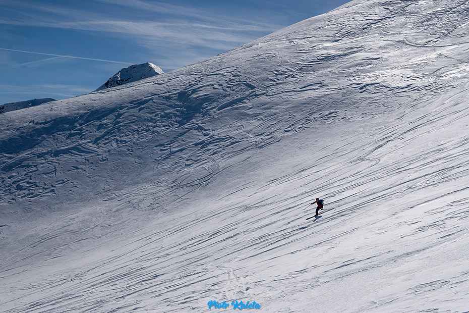 Kolejna szybka przepinka i do góry. Ja nie przepadam za lodoszrenią i kończę 2o metrów poniżej szczytu, Włodek napiera do końca.