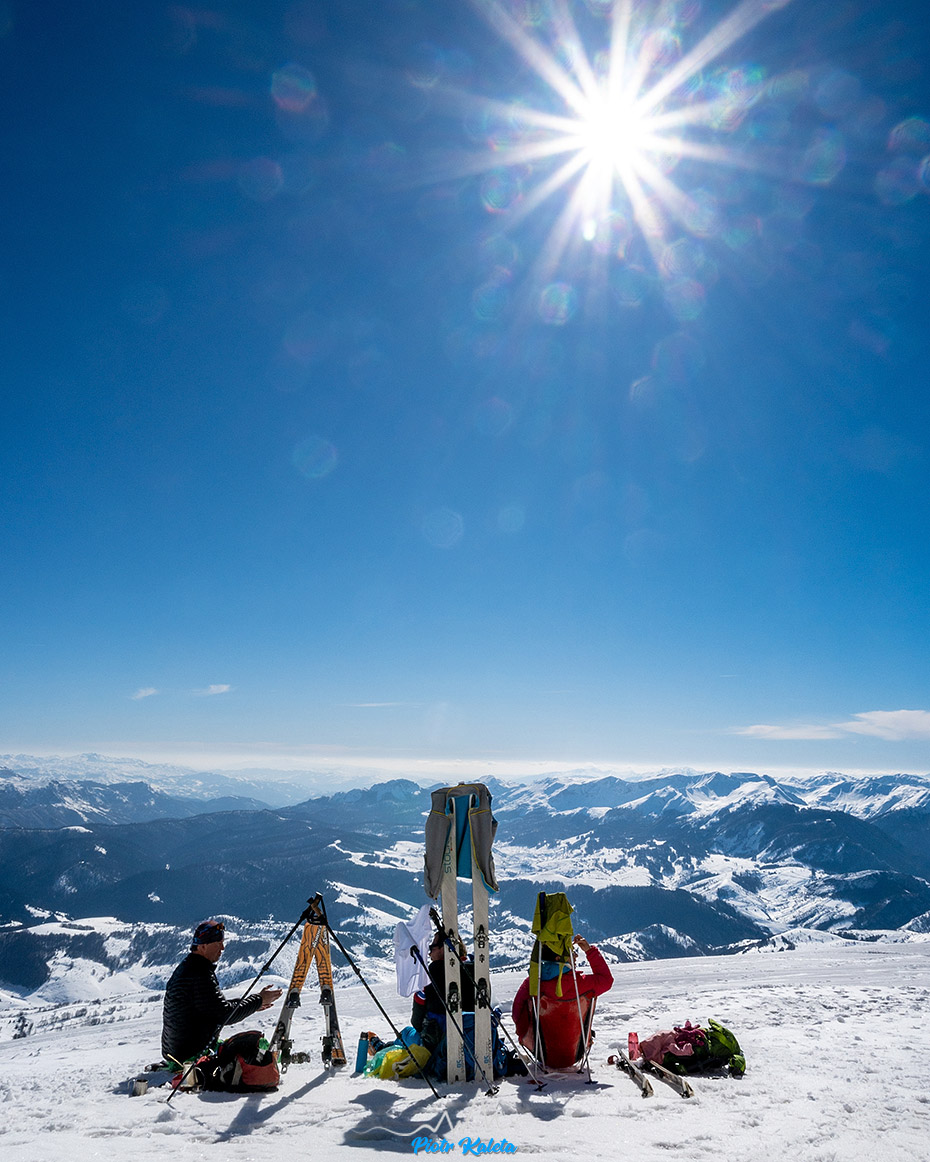 Kawusia, fotelik (nie nasze), słoneczko, widoki (nasze). Dłuuuugo siedzimy na szczycie 😀