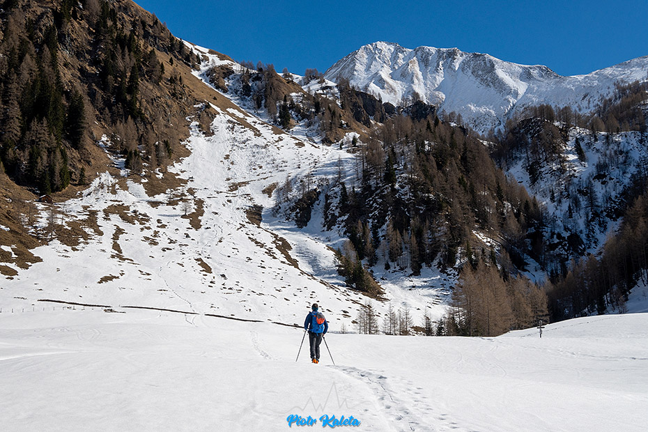 Gdy dojeżdżamy do parkingu na rozwidleniu dróg na wysokości ostatnich zabudowań i gdy patrzę na zachód: piękne strome szczyty i same lasy bez śniegu u podstawy myślę sobie, że to chyba jest wtopa.