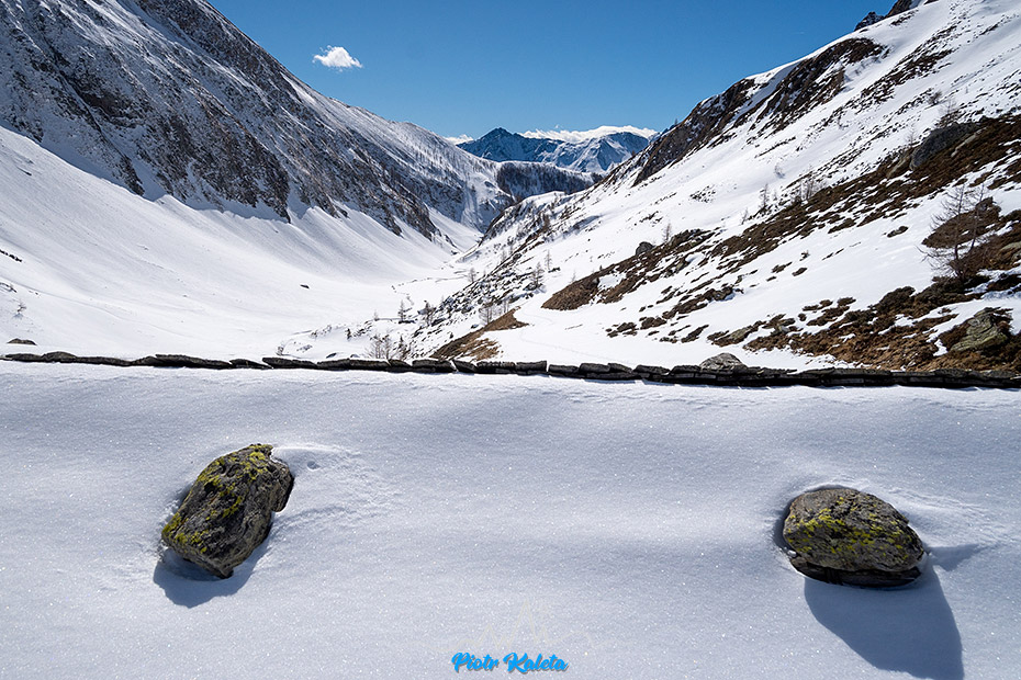 W pewnym momencie rzucam okiem na wschodnią część doliny i najwyżej położony dom. Za nim jest las, krótkie trawiaste (zapewne latem) zbocze i jakiś parkan. Zbocze w śniegu. No to siup po przewodnik by sprawdzić co i jak.