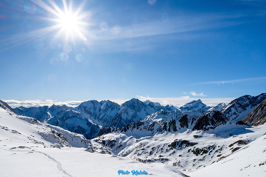 Ribigenspitz (2939 m) i Wurmaulspitze (3022 m) przyciągają oko.