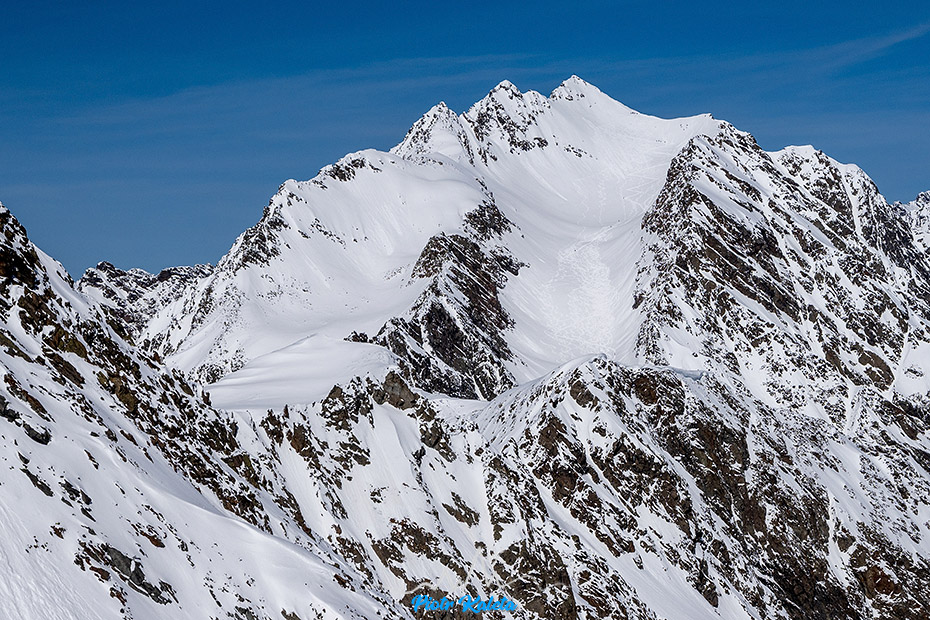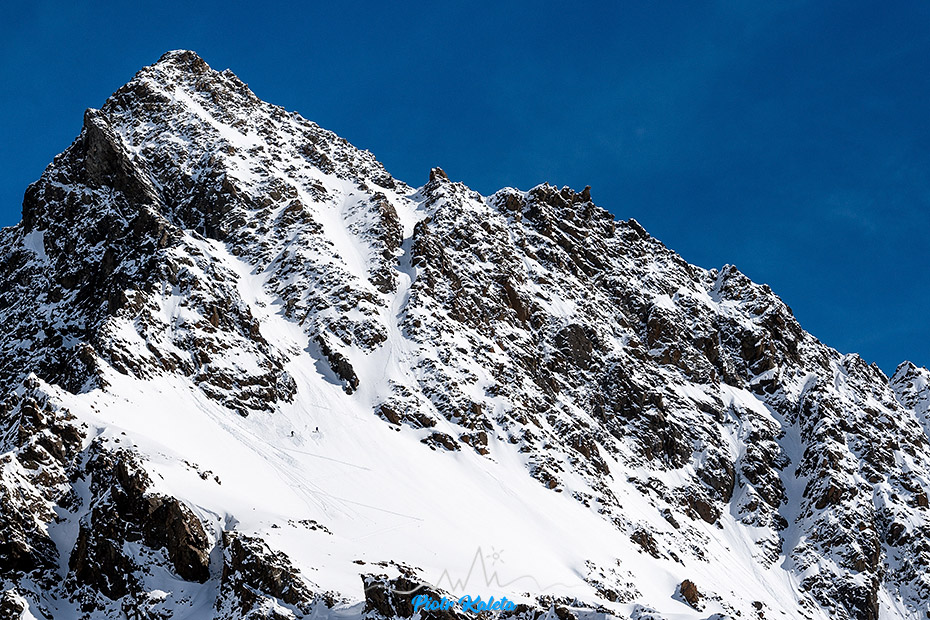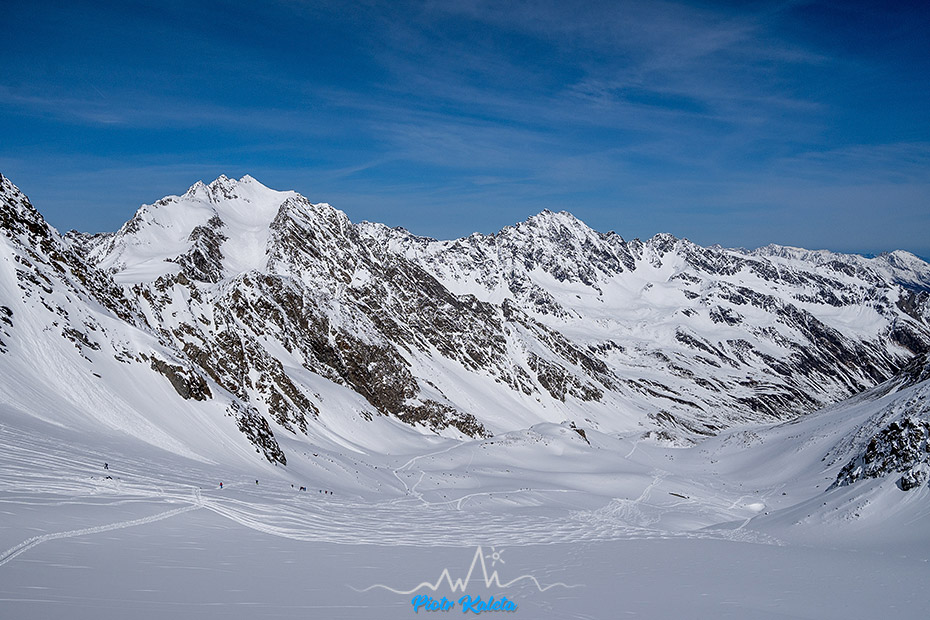 Kolejna ciekawostka: Hinterer Brunnenkogel (3325m). Widać ludków pod żlebem? I ślady w samym żlebie?