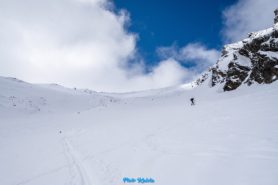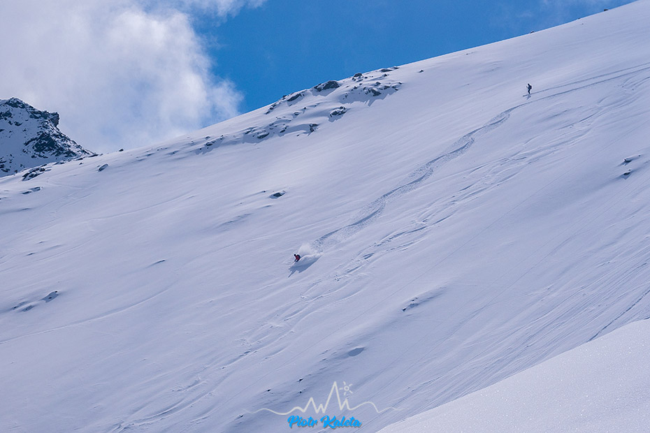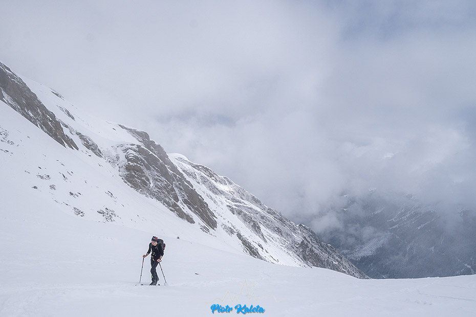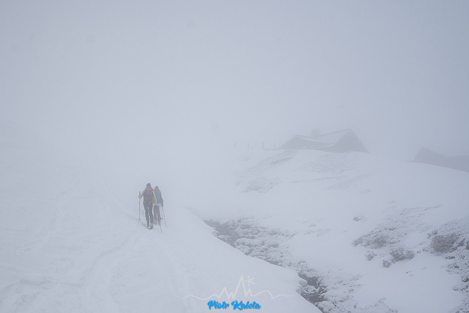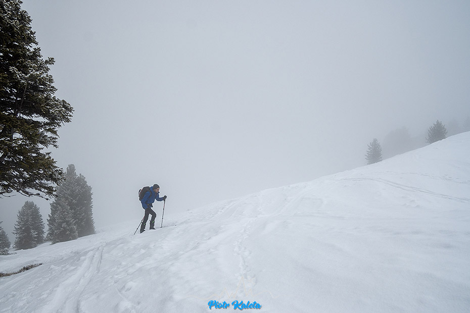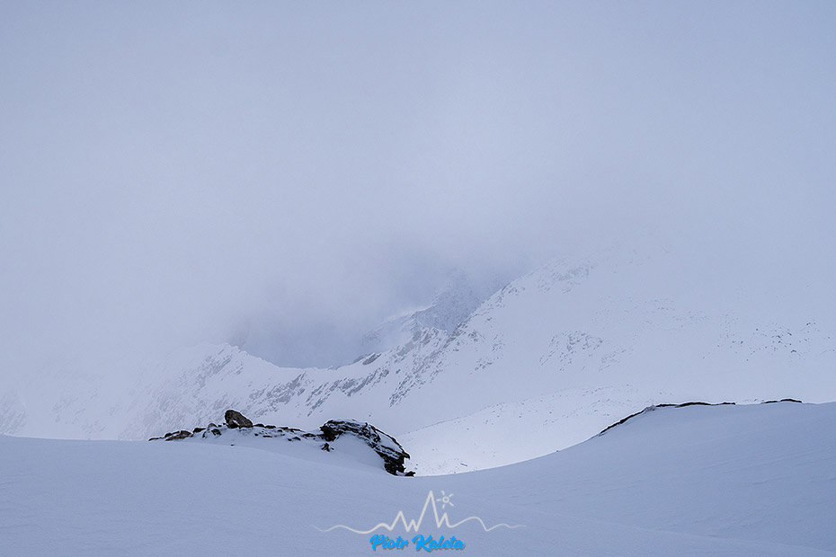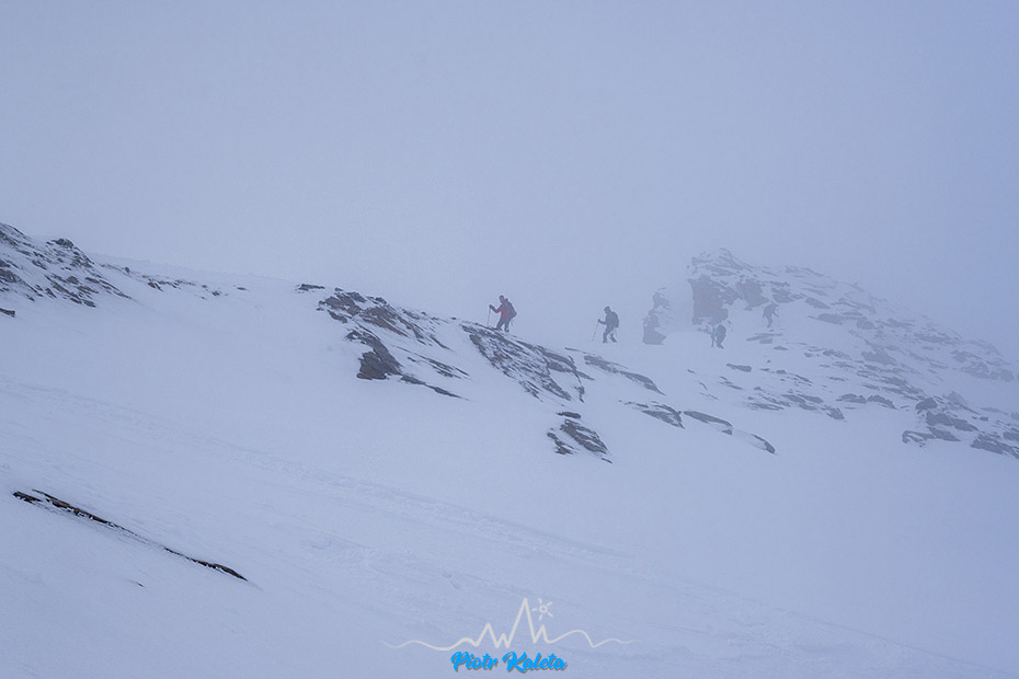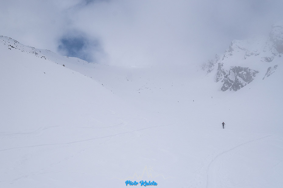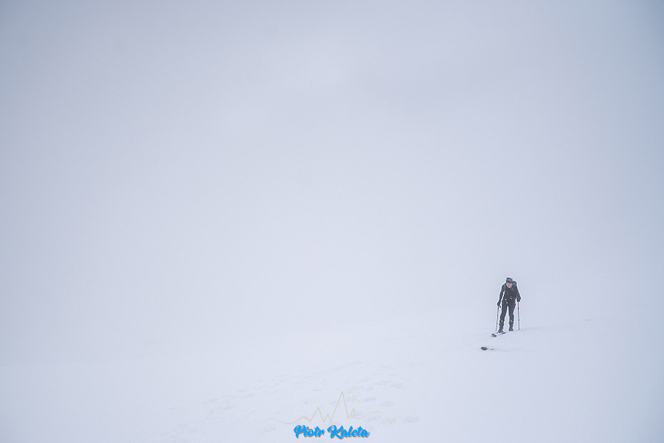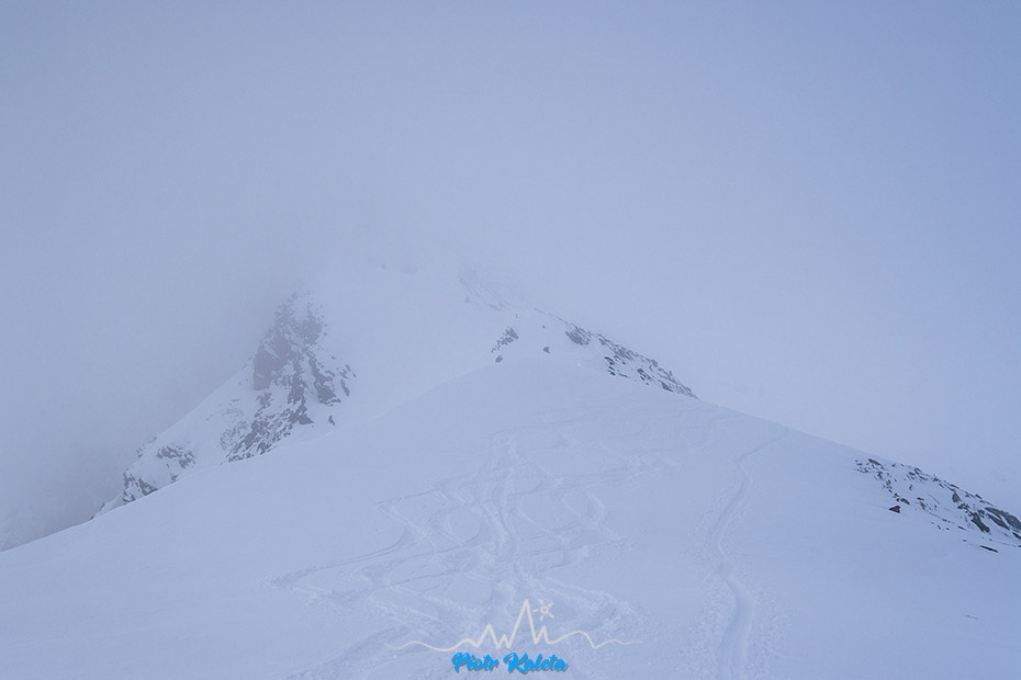 Piotrek próbuje pikować ale zawraca, podobnie jak lokalsi którzy tu doszli przed nami. Ja nawet nie próbuję, przy tej widoczności to już sztuka dla sztuki, czyli zupełnie nie moja bajka. Ale jego zacięcie podziwiam : )