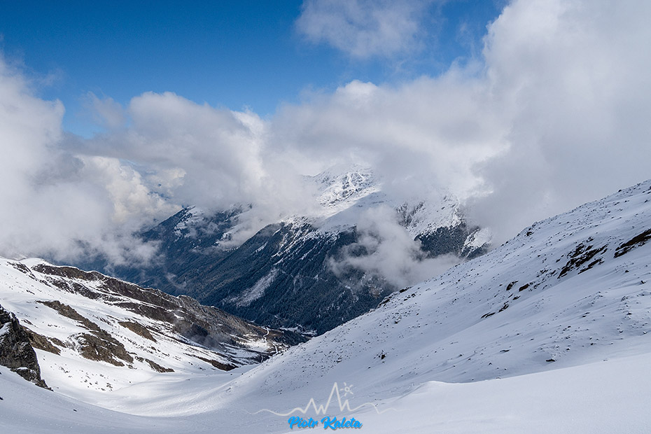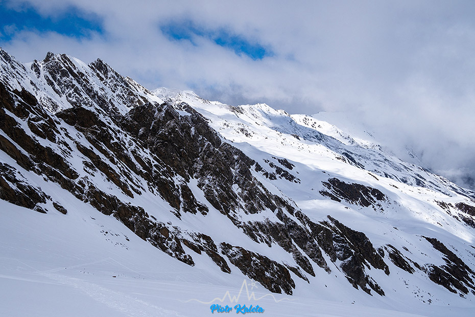 Wybrany wczoraj na cel wyjścia Lampsen Spitze trochę przez moje gapowe zamienia się na Zischgeles. Przejaśnienia jakie mieliśmy na dojeździe po kilkunastu minutach szlag trafia. Mleko jak wczoraj, można się zdołować 🙁