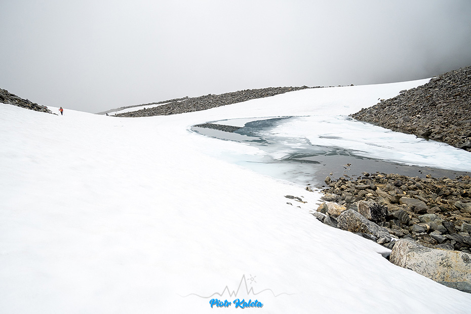 Jest też coś takiego jak Frokostplassen (1315m) – przełęcz w bezpośrednim sąsiedztwie tej ściany. Czyli cel dla takich tchórzy i cykorów jak my! Sam hike zaczyna się o tyle nietypowo, że na pierwszych metrach trzeba się nieco rozpychać łokciami. Ale to tylko wtedy kiedy zaparkowałeś przy Trollstigen. Ów Trollstigen to parking przed zjazdem Drogą Trolli albo na końcu pojazdu nią, sprawa względna – jak wszystko na tym świecie. W każdym razie jeżeli jesteś tu niedostatecznie wcześnie rano to jesteś sam sobie winny. Pierdolec turystyczny kończy się wraz z dojściem do ostatniego tarasu widokowego. Dalej trafiają już tylko ci, którzy mają nieco inne oczekiwania wobec tego co oferuje Skandynawia.