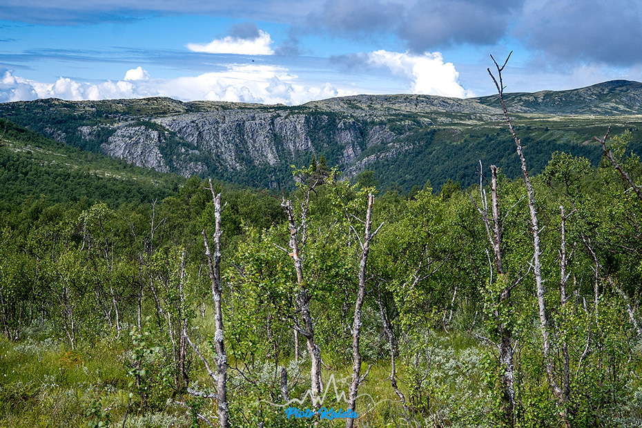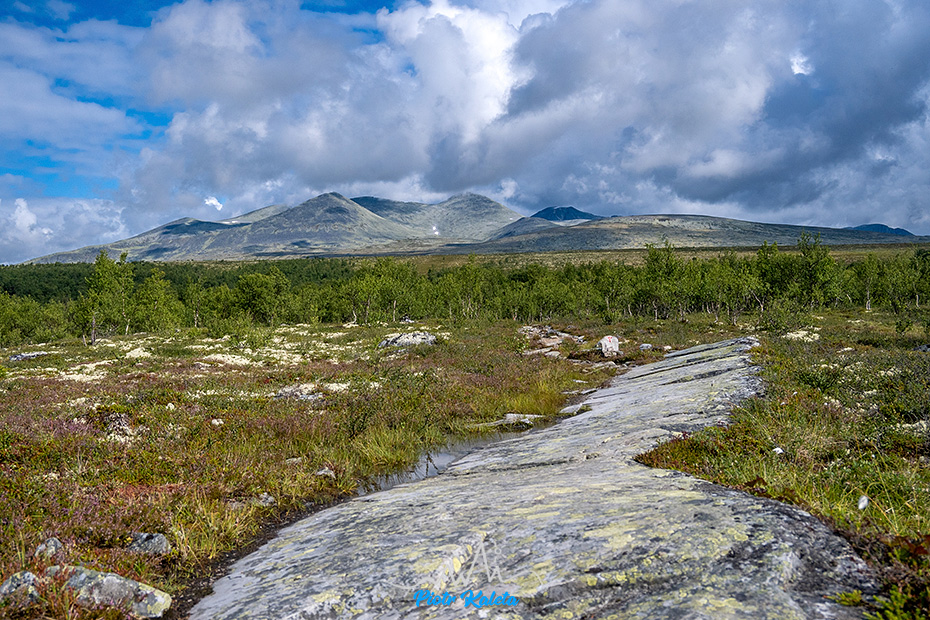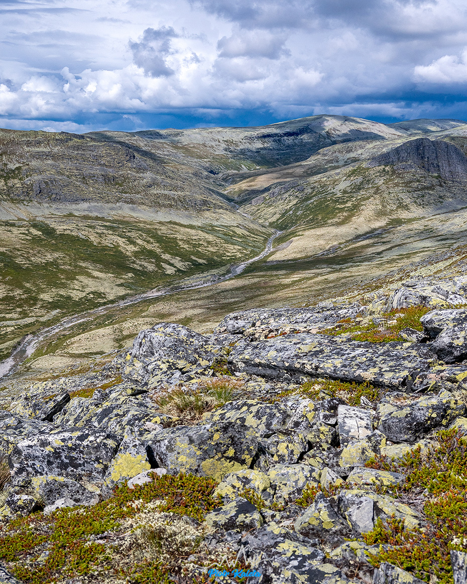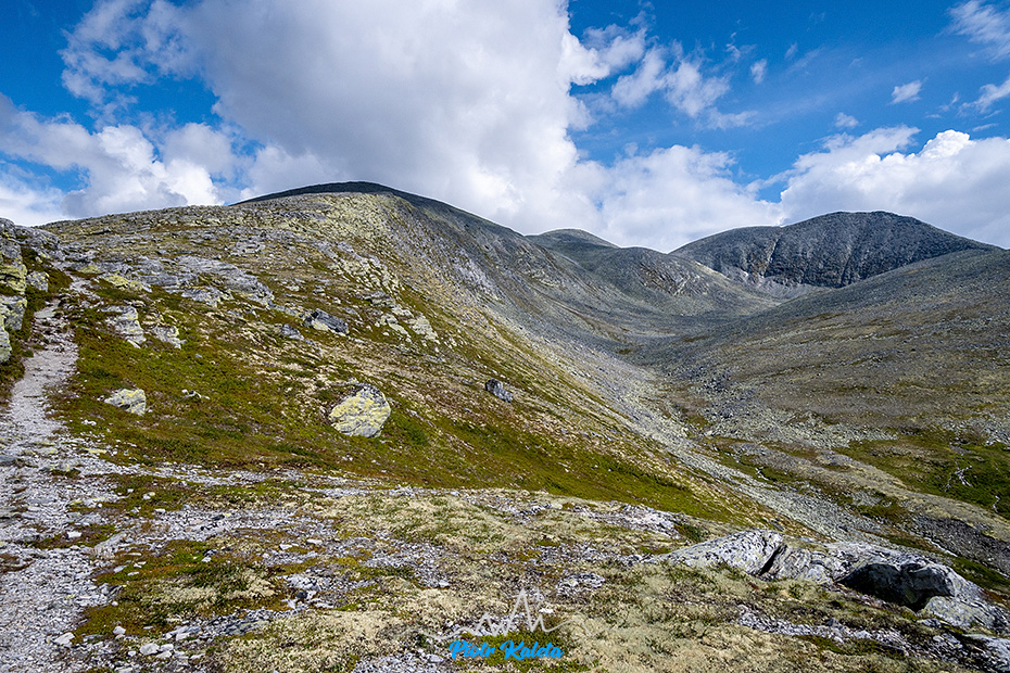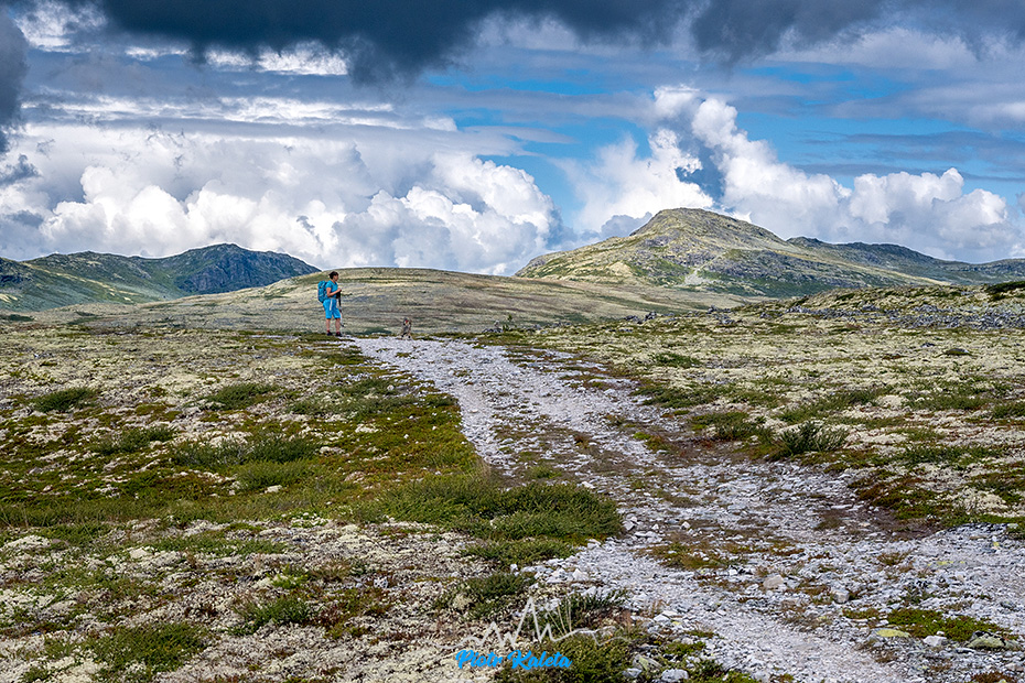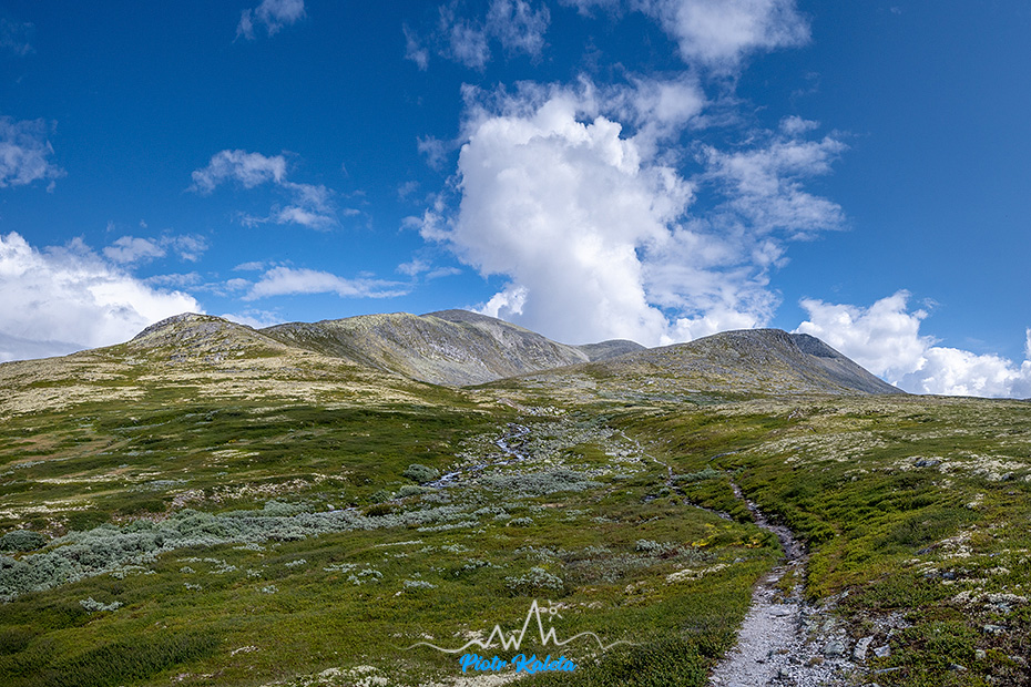 Po jakimś kilometrze teren się wypłaszcza, a w oddali pojawia się masyw w którego skład wchodzi Bråkdalsbelgen.