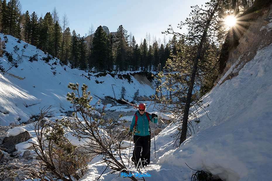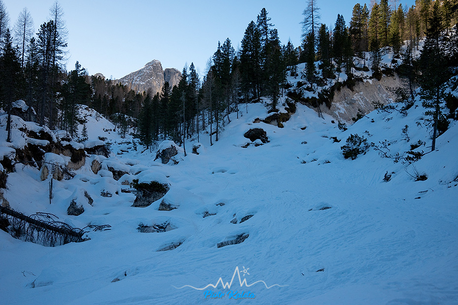 Jeżeli zdecydujesz się odwiedzić na turach ten konkretny zakątek Dolomitów to mam tylko jedną radę: na początku podejścia trzymaj się koryta potoku. Nawet jak wzrok będzie Ci uciekać w las to nie daj się skusić. My daliśmy i był to błąd. Da się, ale przyjemne to nie jest 😀
