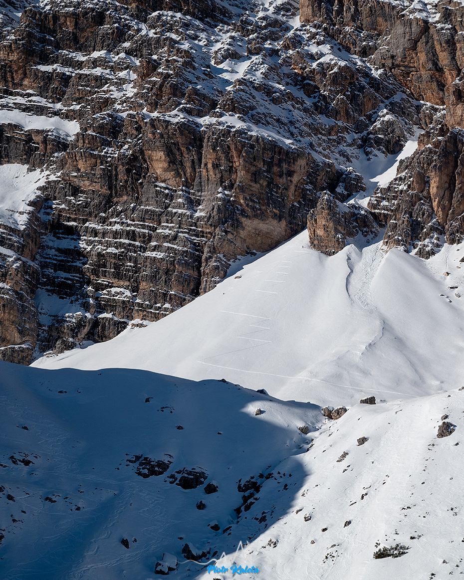 Na telefonie tego nie zobaczysz ale na piargu powyżej zakosami człapią sobie dwie osoby.