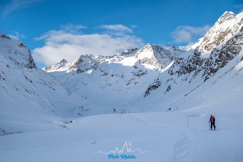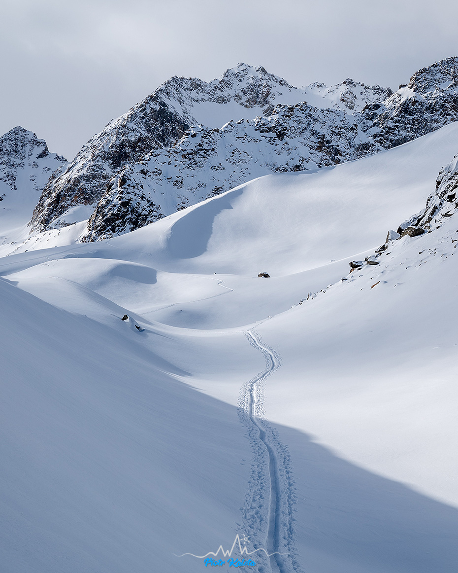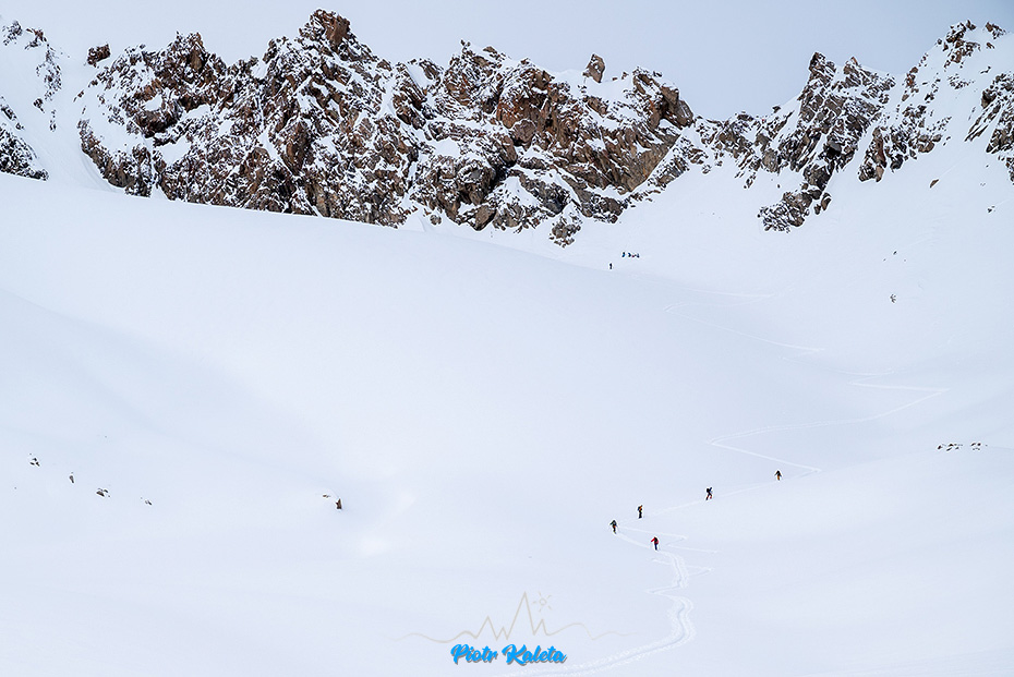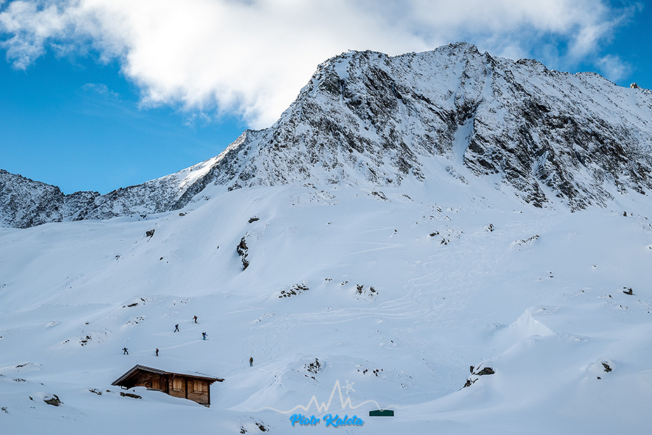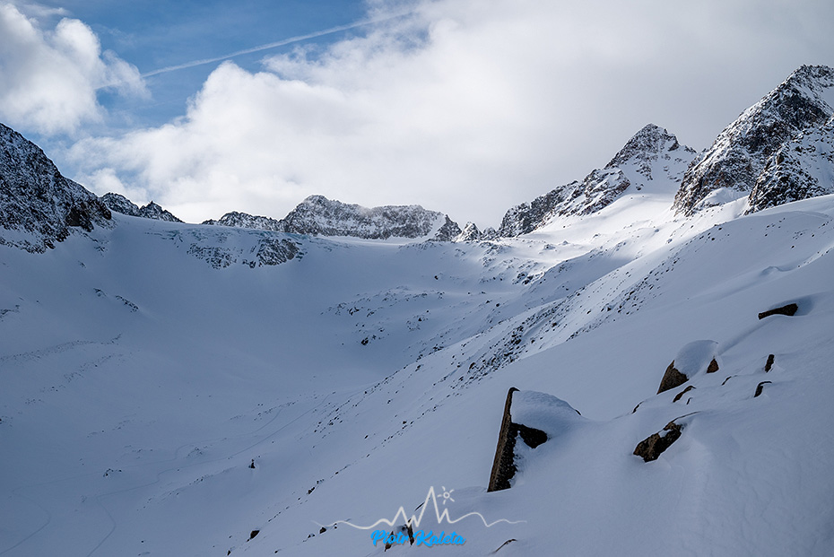 Szczyt po środku to Östliche Seespitze (3416m) i na niego prowadzi też tura. Jednak dziwnym trafem lokalsi są raczej zainteresowani zjazdami niż pikiem 🙂