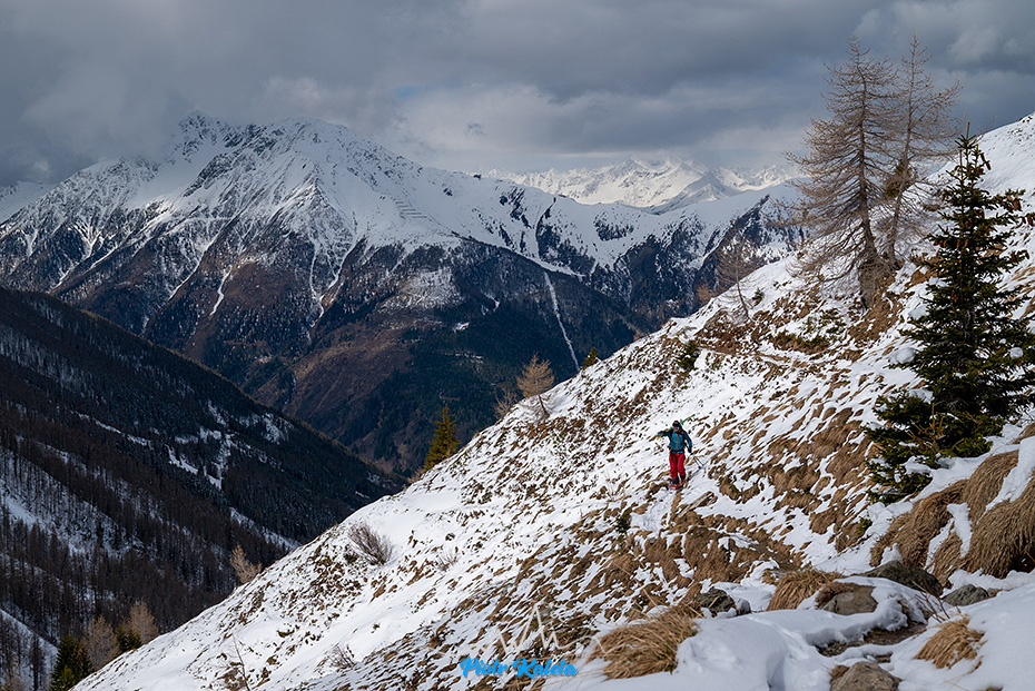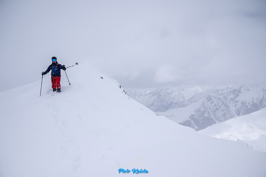 Jak widać widoczność znów “deczko” siada. Chcąc dać sobie szansę by zobaczyć coś ze szczyru odpuszczamy Böses Weibl i idziemy (śladami pary która przetorowała to i owo rano) na Gridenkarköpfe.