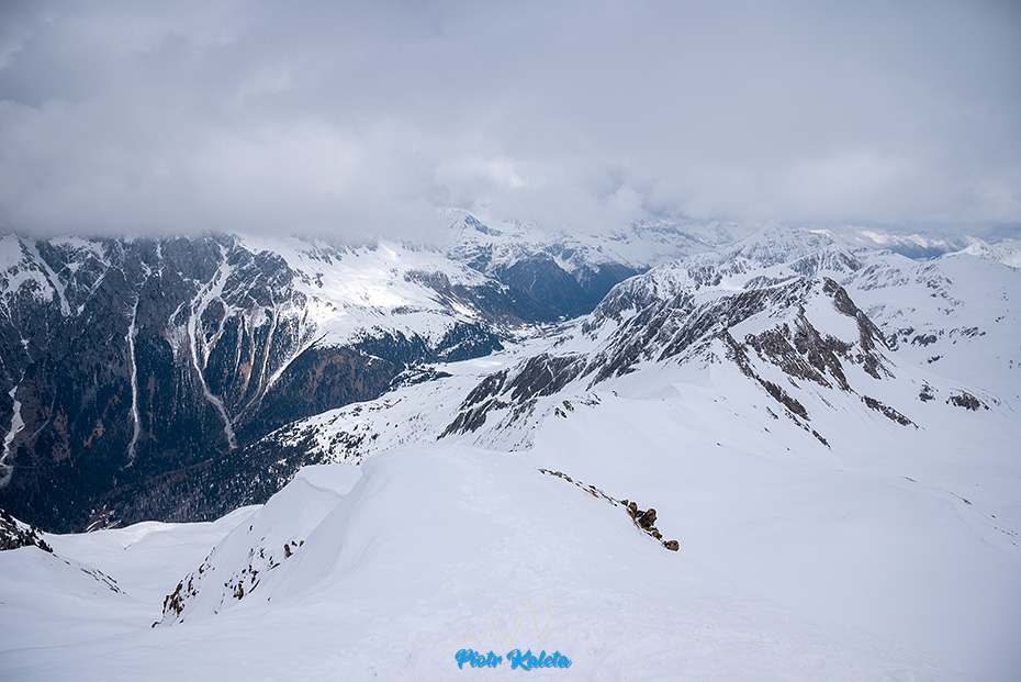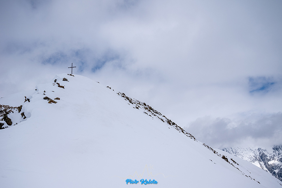 W chmurach ginie końcówka tury na Jägerscharte (2870m) i Almerhorn (2986m).