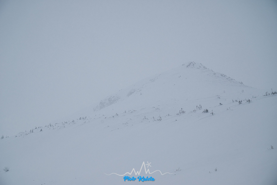 Te kilka kropek na polu śnieżnym przed szczytem to dwie ekipy lokalsów 🙂