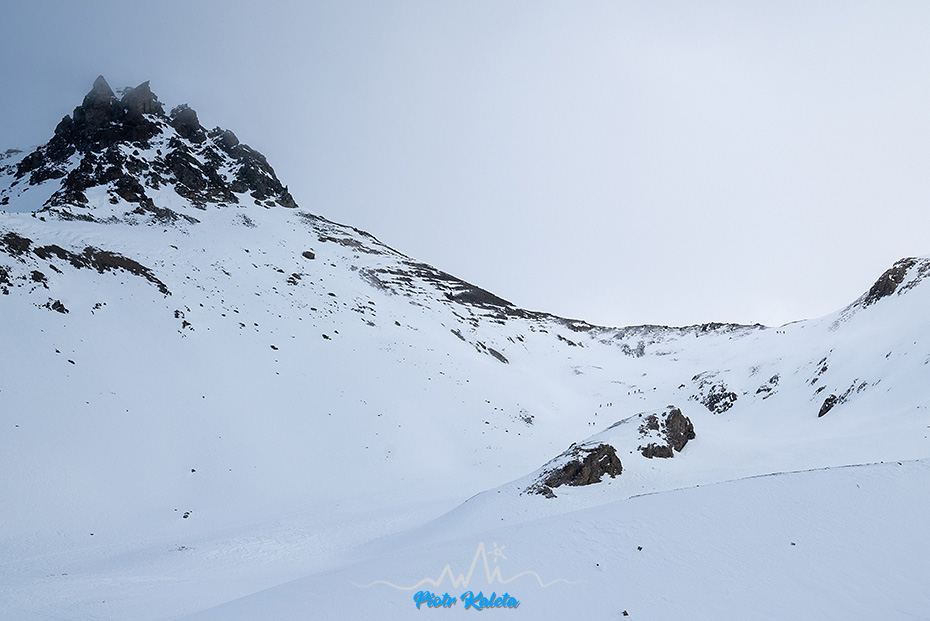 Na siodełku przed szczytem. Jak widać już niewiele widać 🙁