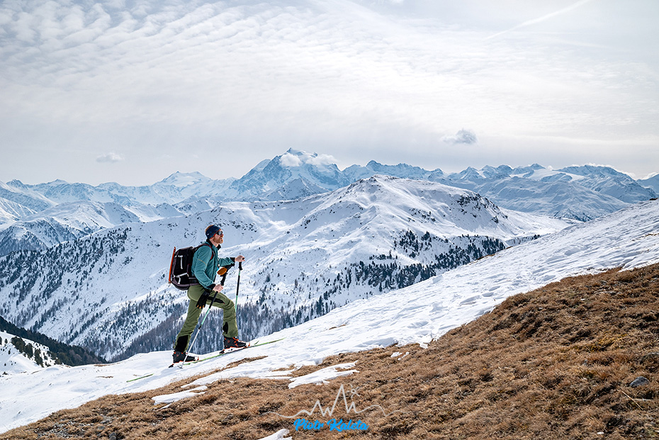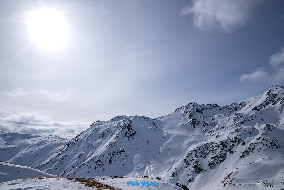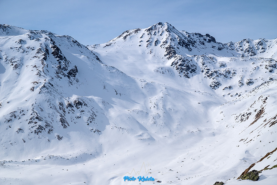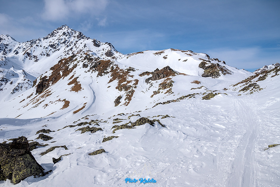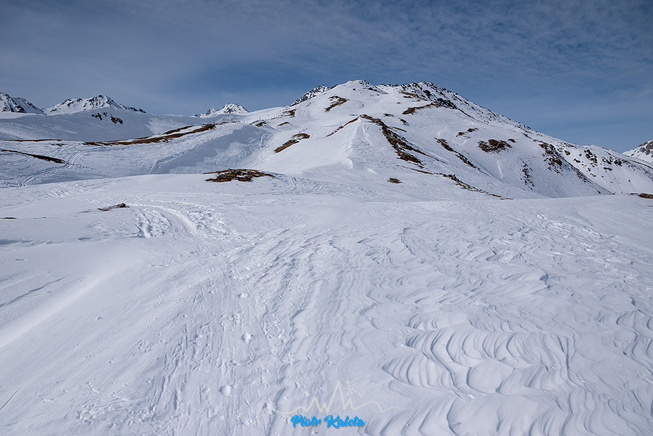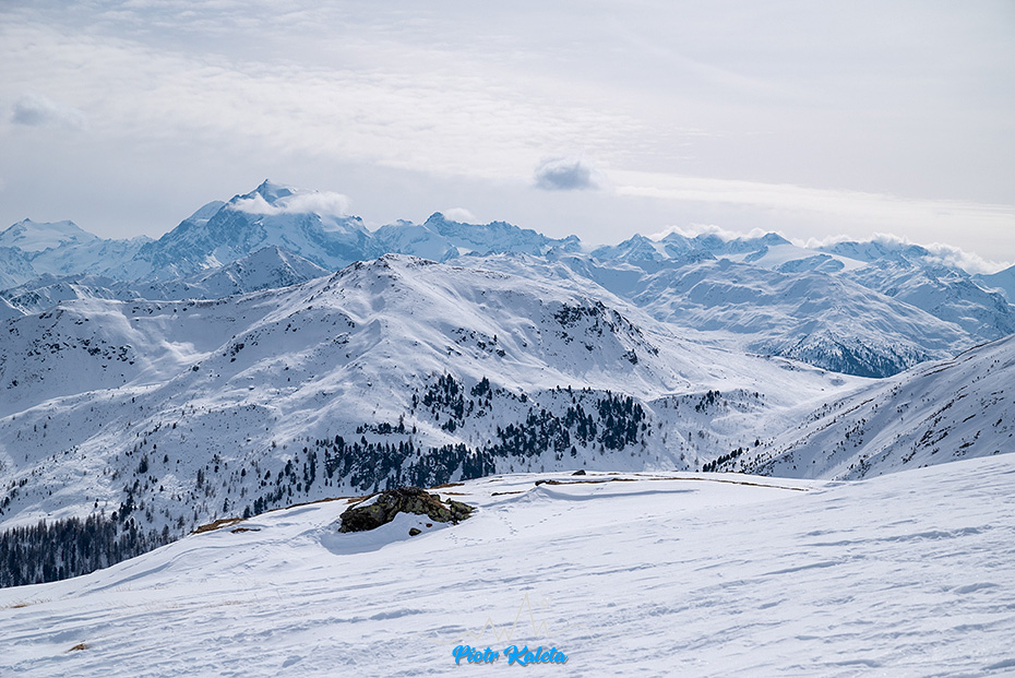 Kälberberg takie nie wiadomo do końca co, coś co się wybrzusza na grani opadającej z Muntpitschen (3162m). Tura łatwa, w sam raz po wczorajszej wyrypie. A że idzie granią to i jest widokowa.