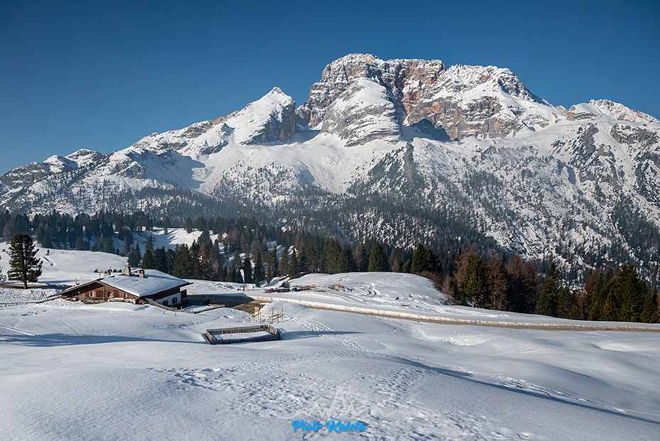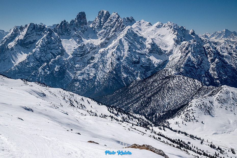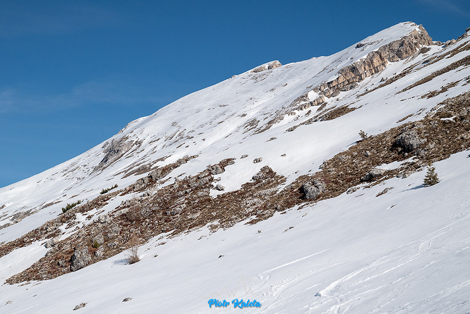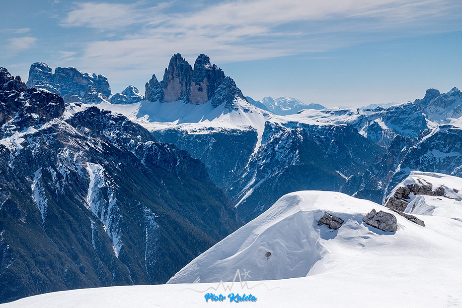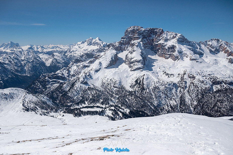 Po lewej Piz Popena (3152m) a po prawej Monte Cristallo (3221m). Passo del Cristallo (2806m) pomiędzy nimi jest skiturowa, trudności “S”, ciekawe za co …