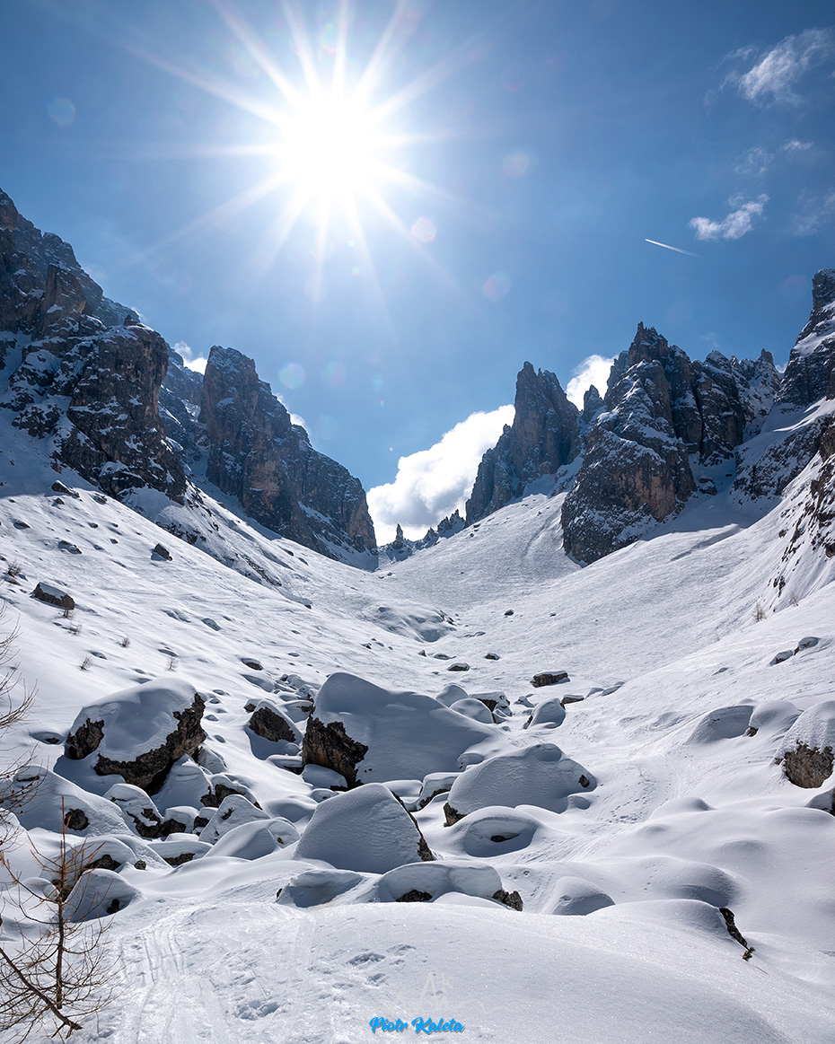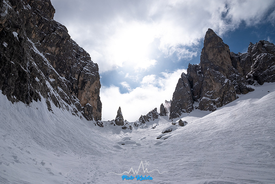 Wczorajszy wieczorny plan na dziś celował w Forcella del Nevaio (2670m). Wycena harda bo “ZS+” ale tak naprawdę to ostatni dzień wyjazdu i liczyliśmy na szybką i łatwą turę tylko do dobrze widocznego z doliny Rifugio Fonda-Savio.