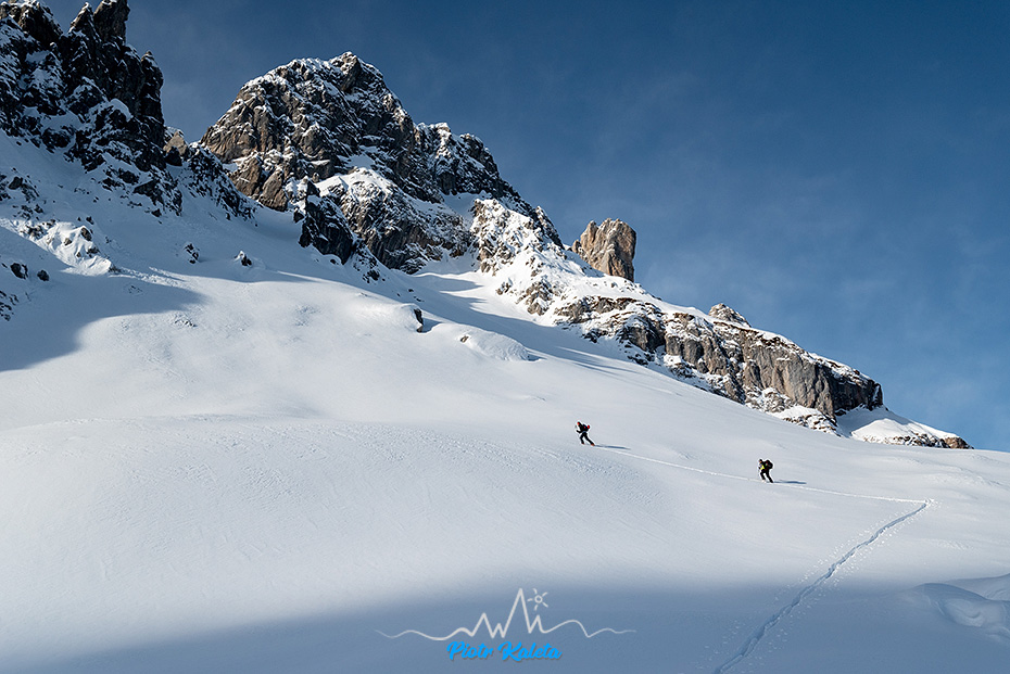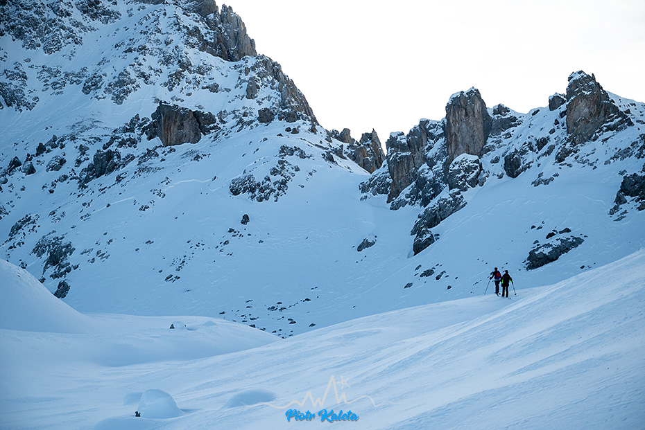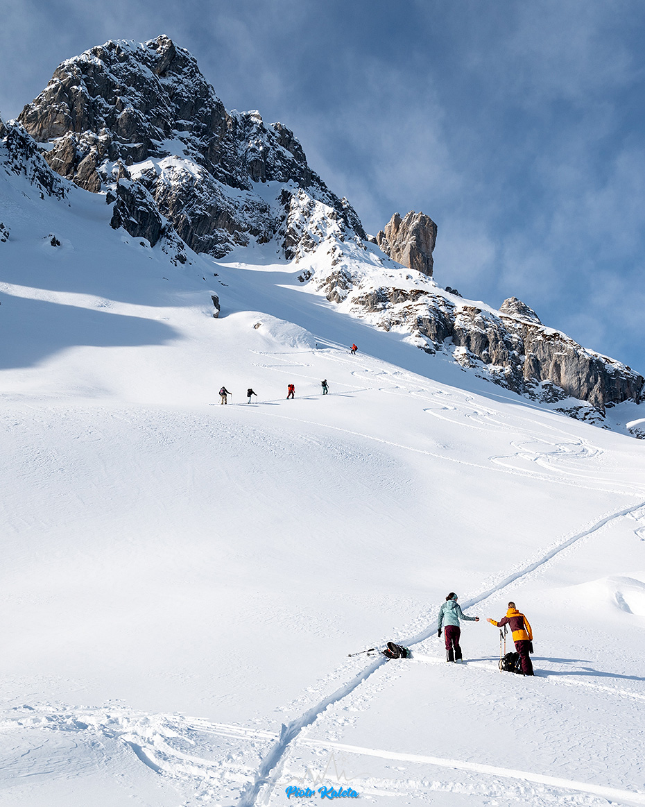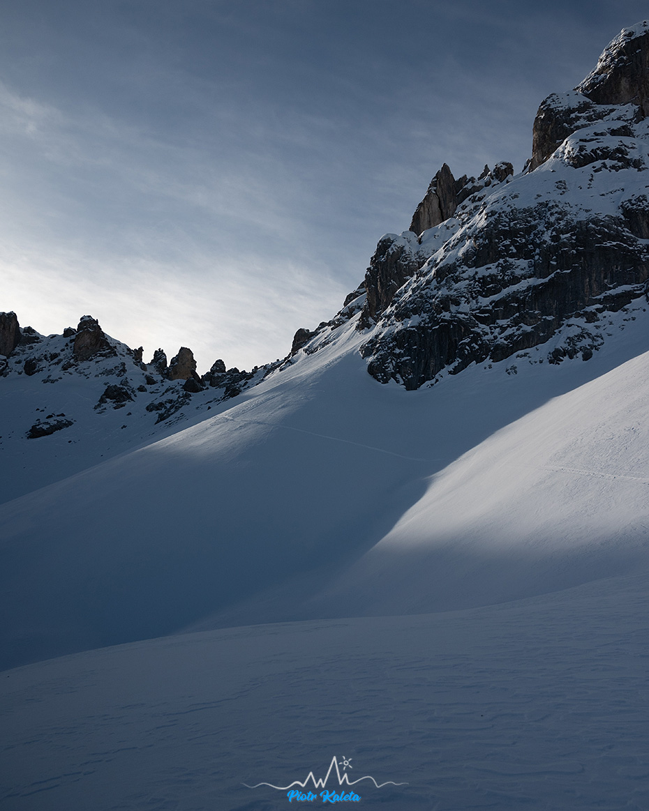 Nagroda pozieszenia: fantastyczny śnieg na piargu opadającym z ramienia Kleiner Türm.