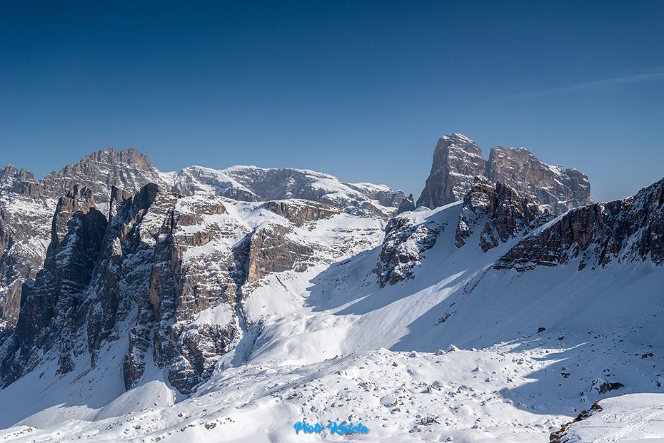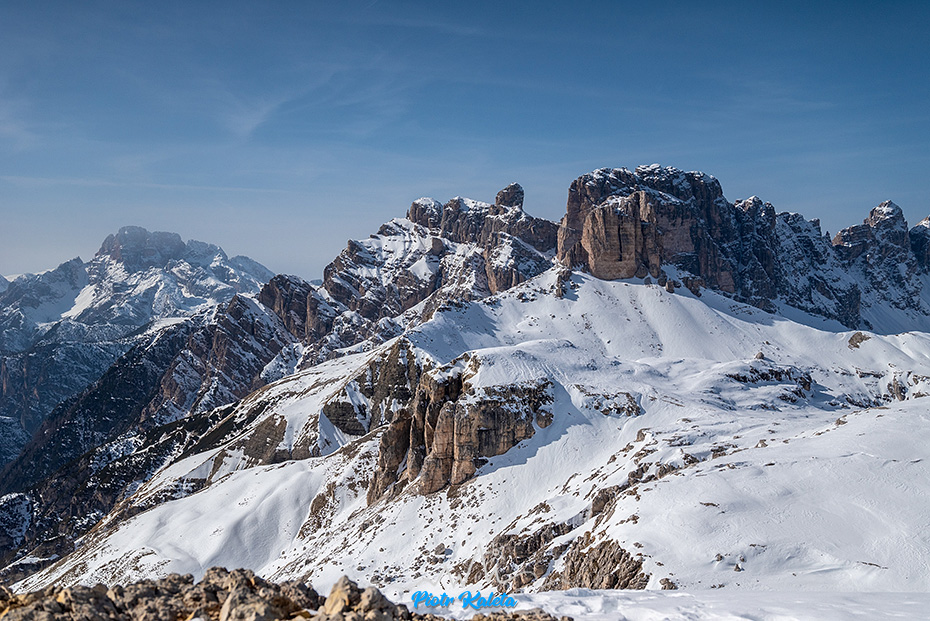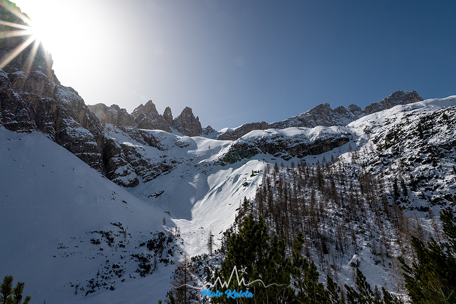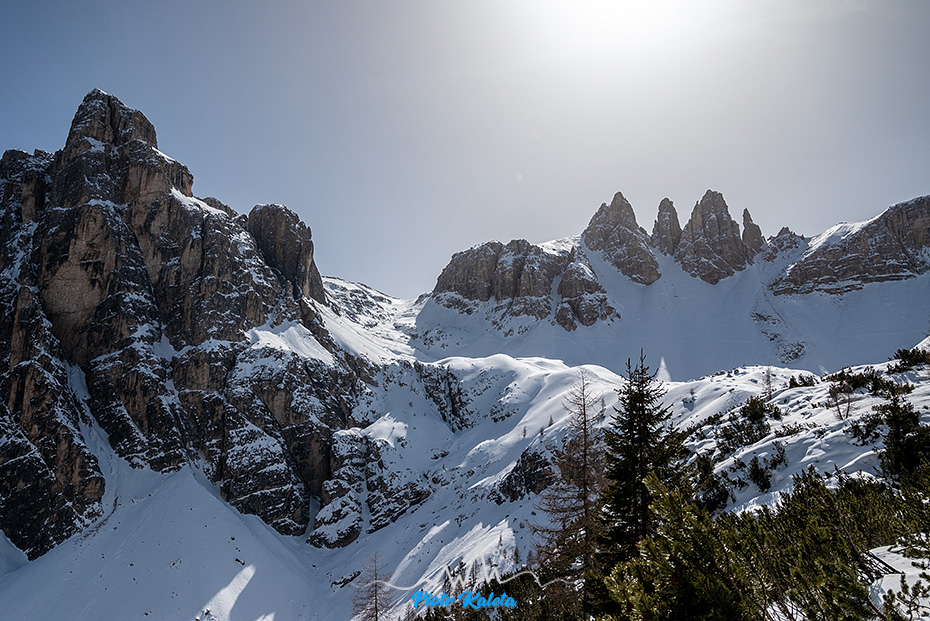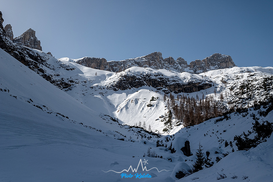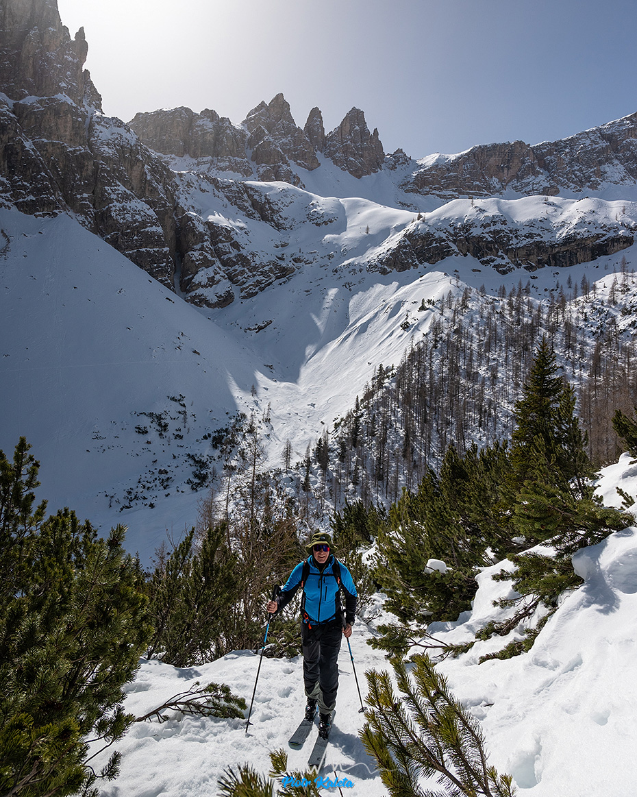 Dla mnie to dość ważne zdjęcie bo ta niepozorna niższa przełączka z lewej strony to Forcella del Corno d’Angolo (2360m) – moja pierwsza tura w Dolomitach 🙂 Robert – dzięki za pomysł 😉