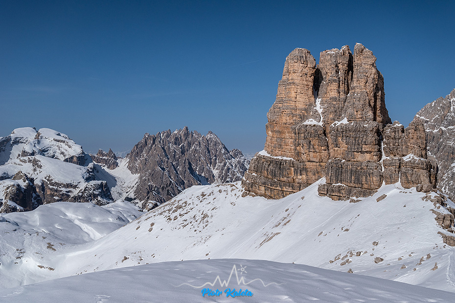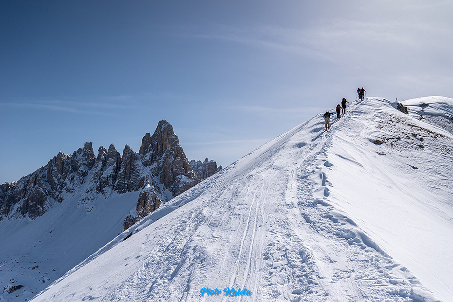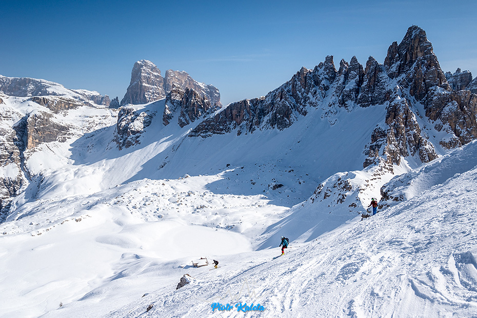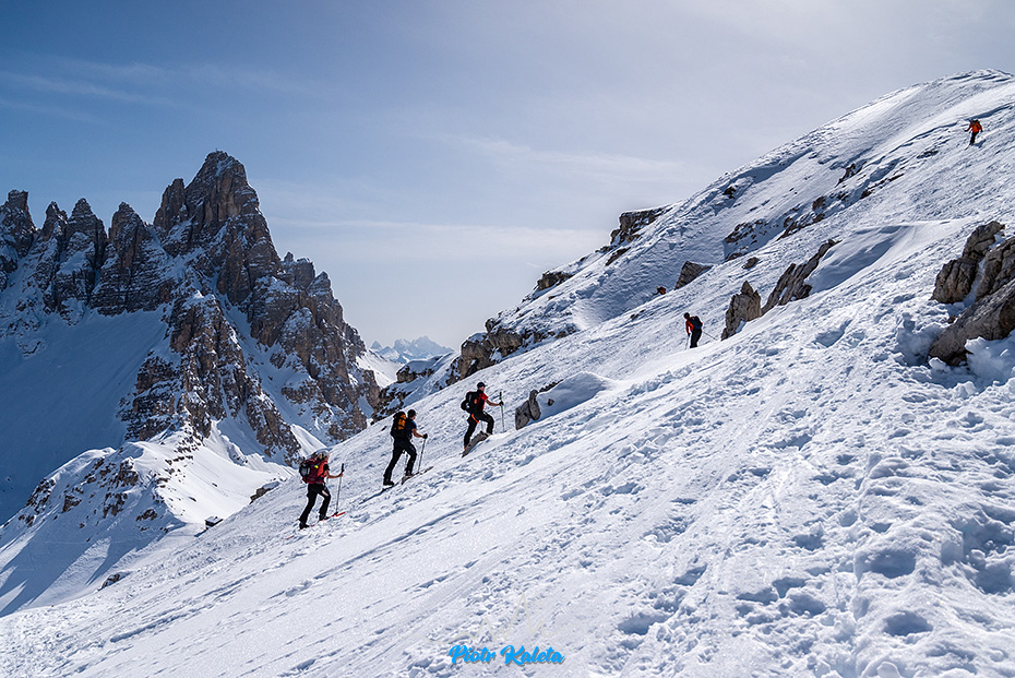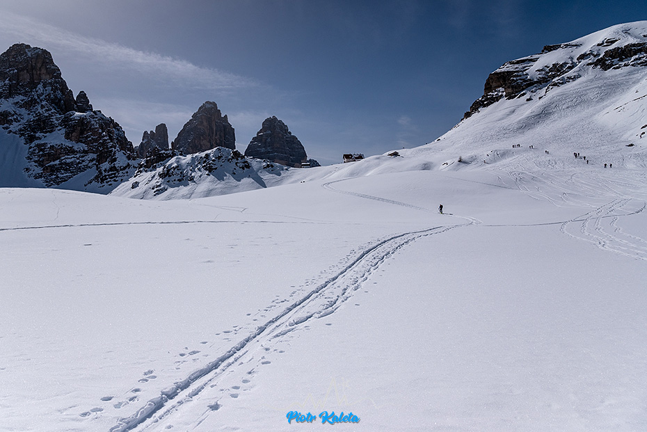 Z dużą uwagą przyglądamy się śladom prowadzącym w dół z Büllelejoch / Forcella Pian di Cengia (2522m) bo to może być część jutrzejszego zjazdu z któregoś ze szczytów masywu Croda Fiscalina.