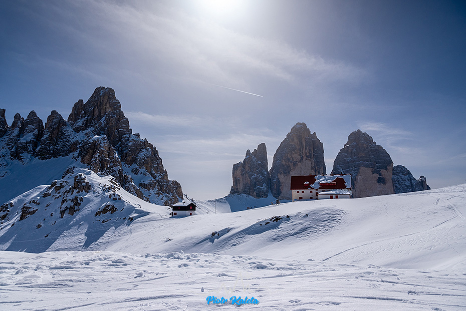 Jest niemożebnie ciepło, więc bliskość Rifugio Locatelli alle Tre Cime mobilizuje by dopiero koło niego się zatrzymać na popitkę 🙂 Sextener Stein / Sasso di Sesto to to coś co nie załapało się do kadru po prawej.