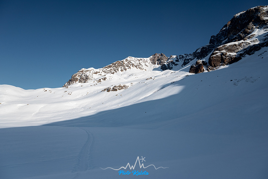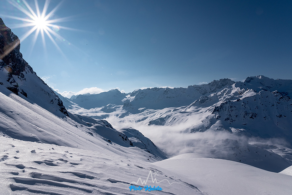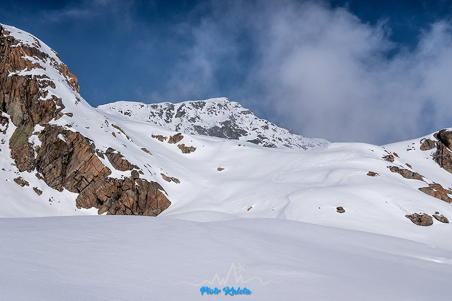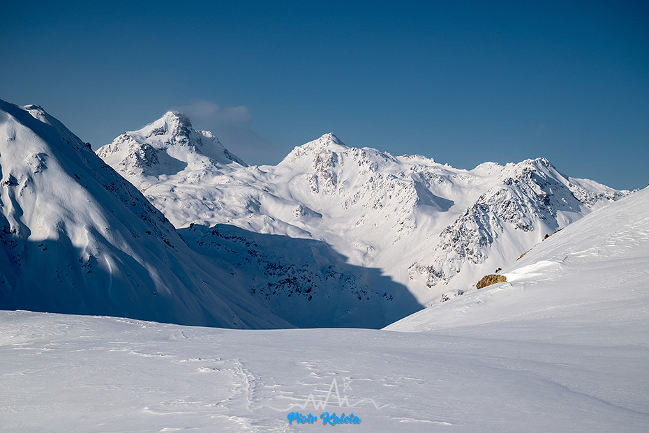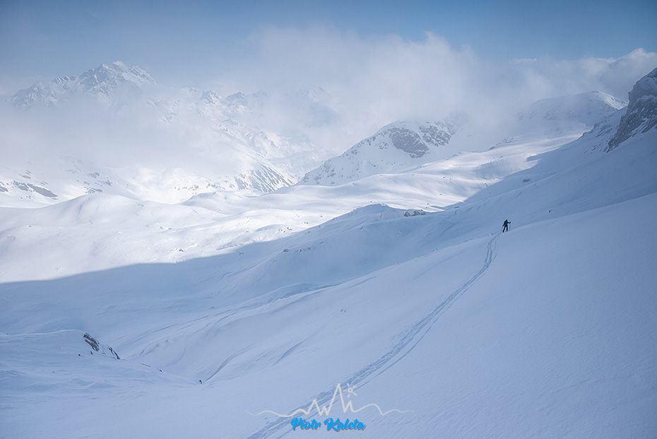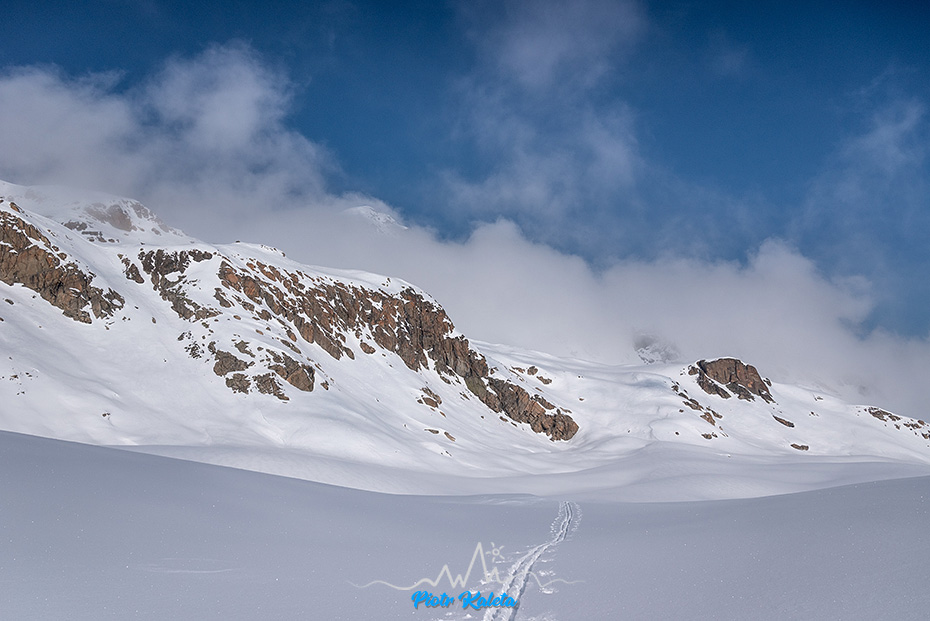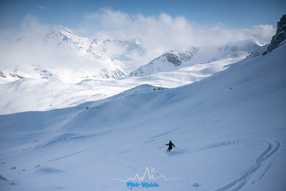 Flüela Schwarzhorn – już coś widać. I widać też, że nowego jest dużo. Jak dla mnie i poziom ryzyka jaki tu teraz widzę – za dużo 🙁