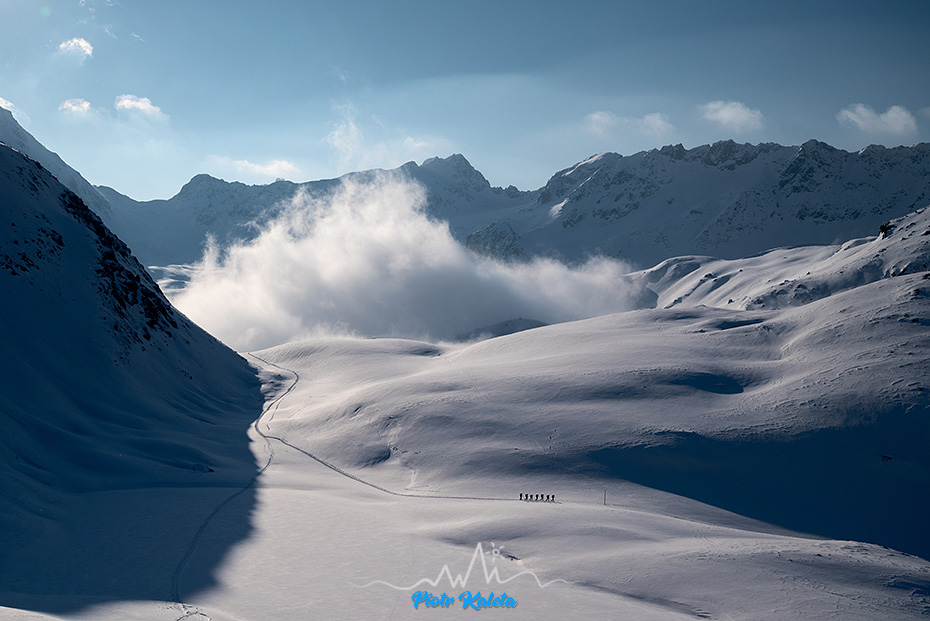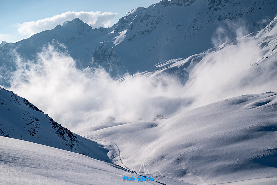 W nocy trochę dosypało, ile to na oko ciężko ocenić – zależy gdzie się spojrzy, bo wiatr zrobił swoje. Teraz nadal lekko wieje i jest dość zimno ale spektakl jest piękny.