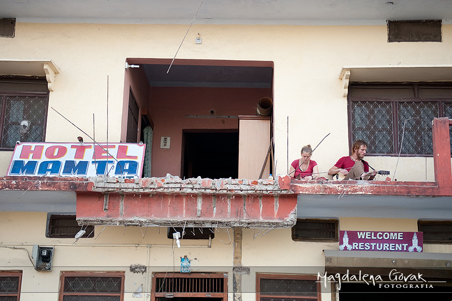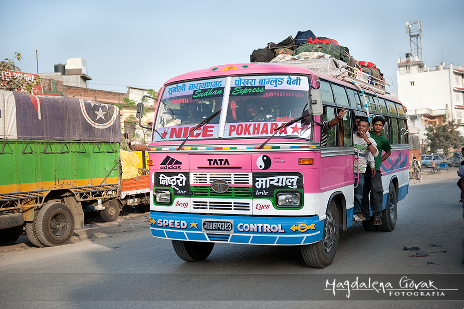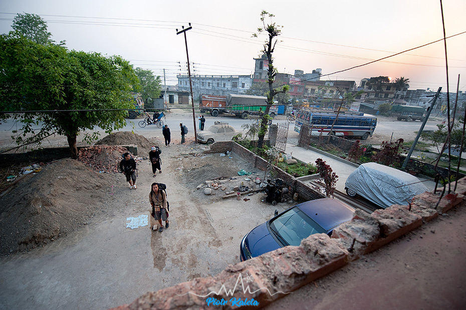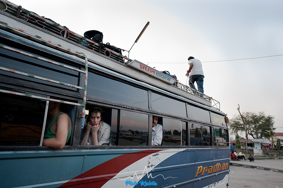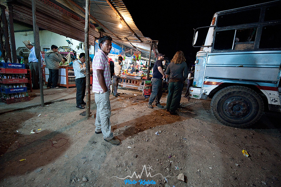 Fałszywy alarm – autobus przed hotelem to nie nasz pojazd. Bardzo niedługo okaże się, że w tym miejscu ugrzęźniemy do wieczora. Dużo później dowiemy się, że sprawcami tego przymusowego odpoczynku są maoiści blokujący drogę gdzieś dalej.
