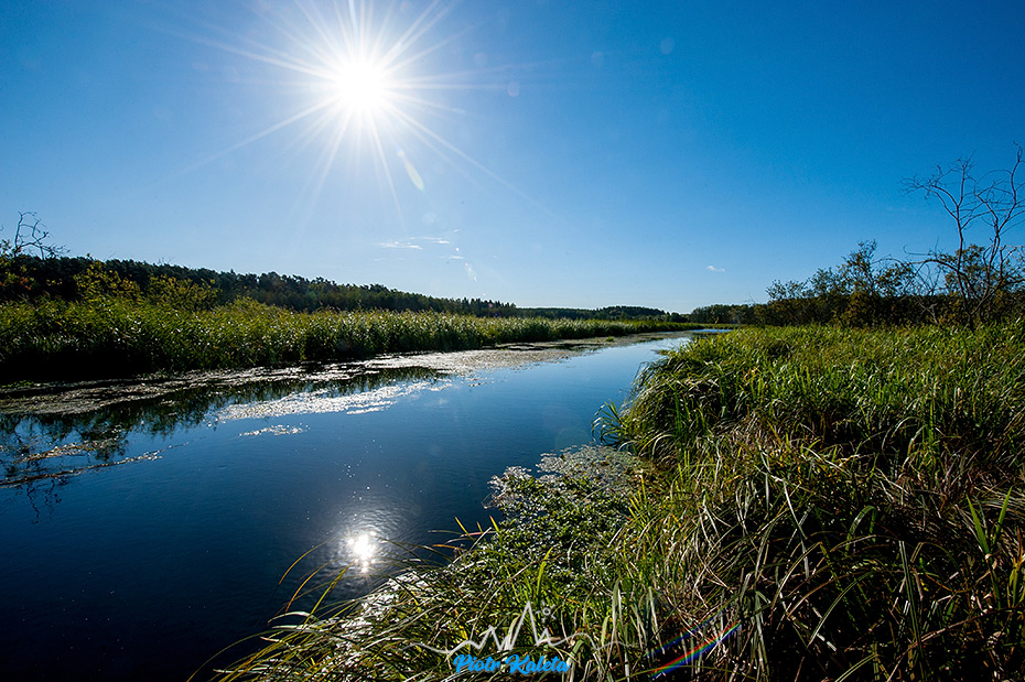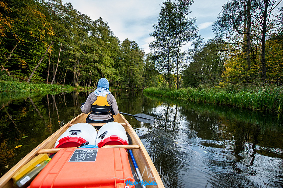 Spływ na tym odcinku zaczyna się na 82.6 km i gdzieś przez kolejne 2,5km jest dość moczarowo. Co prawda dno nie jest zarośnięte tak jak na przykład Czarna Hańcza w lecie, ale nie zmienia to faktu, że na tym kawałku rzeki nie ma jak wyjść na brzeg. Pogoda dopisuje – niebo jest czyste a temperatura o 9.3o zaczyna się w końcu robić komfortowa. Nasze wiosła leniwie uderzają w wodę i mamy zamiar trzymać się takiego rytmu przez cały spływ – na tym, wyjeździe w naszych planach tym razem jest wyłącznie rekreacja : )