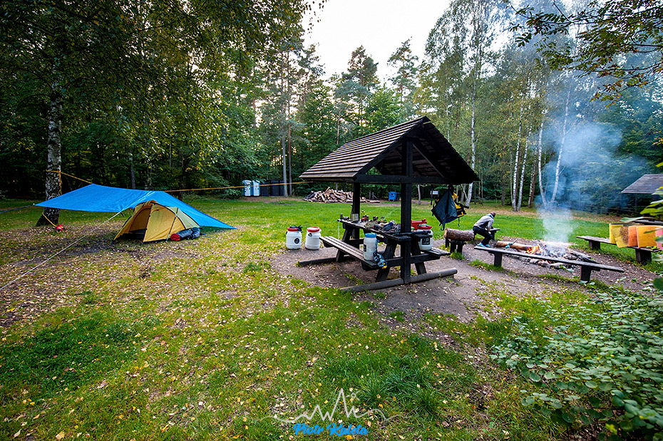 Rozbiliśmy się na łącze po przeciwnej stronie niż wioska, było więc spokojnie. Było ognisko przy którym pod koniec siedziałem już sam bo Myszkę zmorzyło. Mycia nie było.