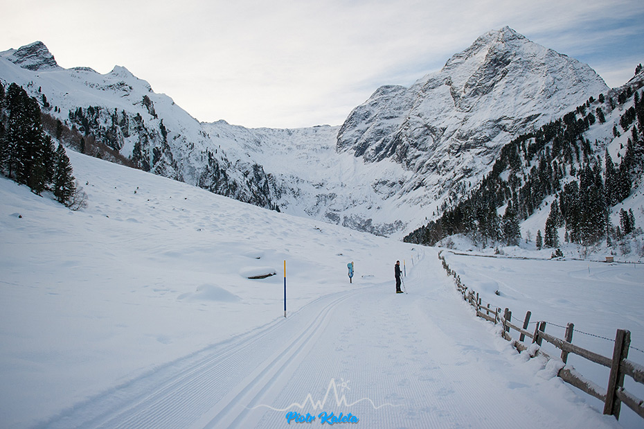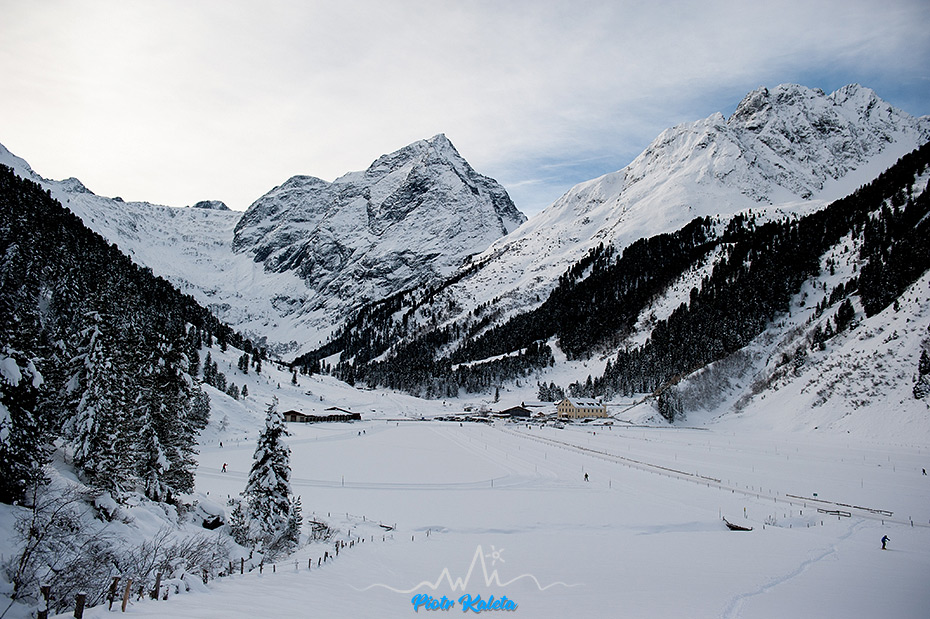 W poszukiwaniu dobrych warunków do dziobania w lodzie wywiało nas (znaczy mnie i Jacka) w dolinę Sellrain. O ile w dolnej części doliny lody raczej wytopiło (a przynajmniej z drogi nie było nic widać) to o tyle w górnej było już całkiem nieźle.