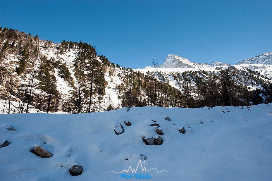 Tym razem z dojazdem na miejsce nie było już problemu, podobnie jak z podejściem, choć rakiety założyłem na buty dopiero przed mostkiem (Magda tury już na starcie). Po prostu wszystko było zmrożone prawie na “beton”.