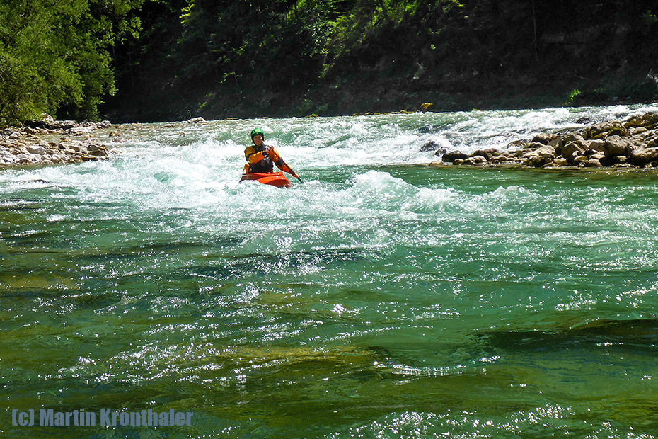 Mam do tej rzeki wielki sentyment bo to w był w końcu mój Alpejski debiut na białej wodzie : ) Tym razem trafiła się okazja zamoczyć wiosło z Rolandem, Gabi, Martinem i Angi. Poziom wody niski, więc zdarzyło się poszorować o kamienie i to był chyba jedyny minus.