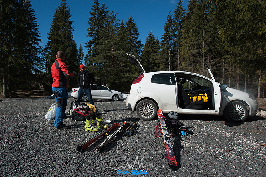 Jak się doda do tego zabetonowane kartoflisko w Salatynowym Żlebie na którym jeden z zawodników połamał sobie nartę a Rafał wyrwał przód wiązania (i którego część po prostu zszedłem) to będzie już pełen obraz tego dnia. O 11.3o jesteśmy na parkingu przy dolnej stacji kolejki, Rafał ogarnia serwis swojej narty po czym na nocleg ruszamy w kierunku tajnego spotu Tomka 🙂