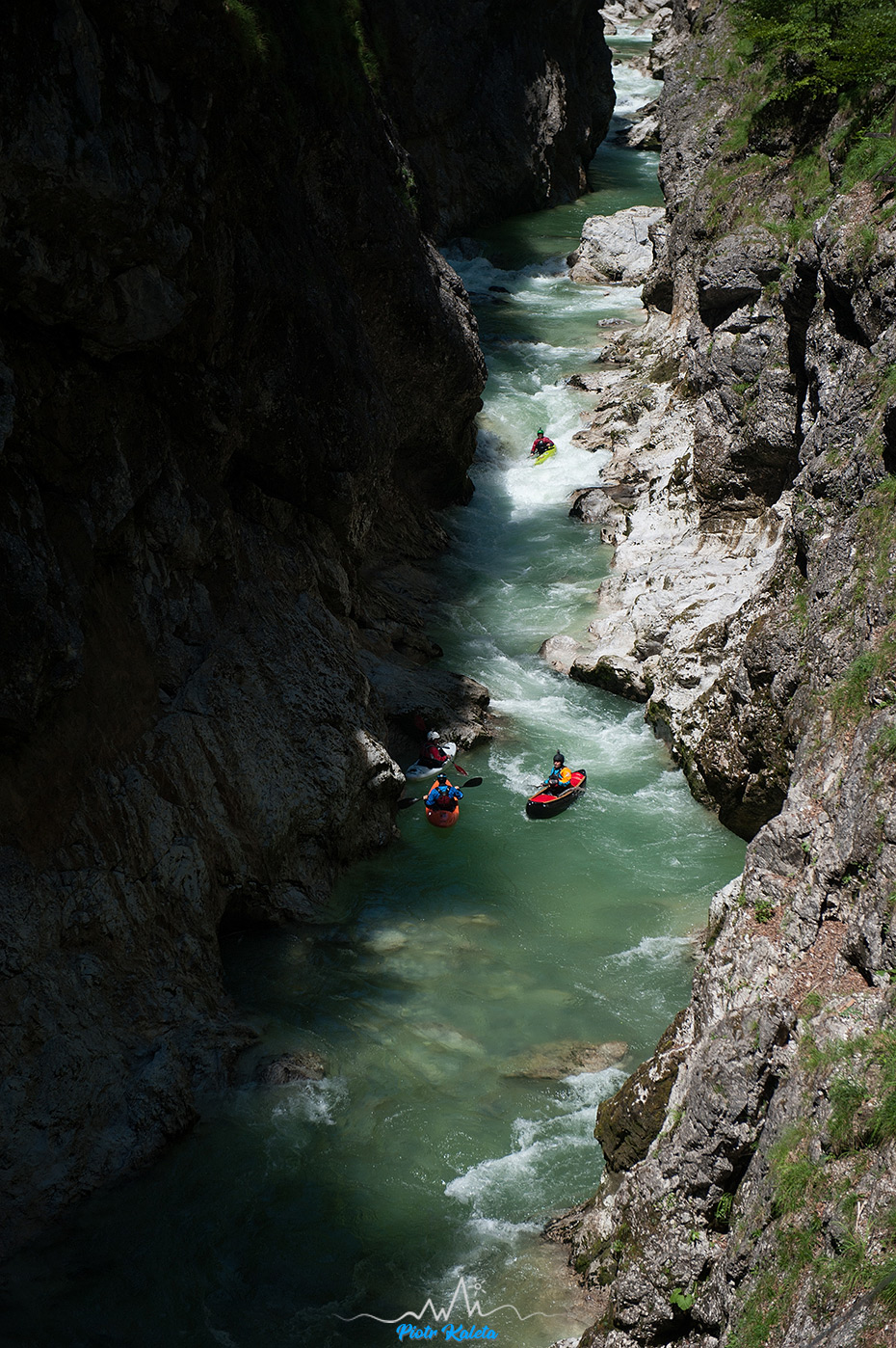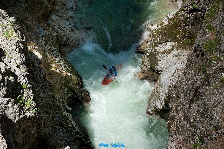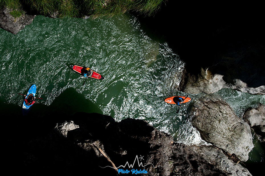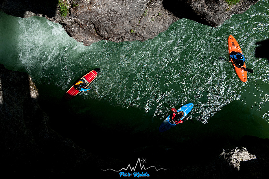 Bo pierwszy rzut oka na sam kanion rozwiewa złudzenia: wywrotka bez eskimoski = przepłynięcie całości wpław z jednym mocnym odwojem po drodze. Przynajmniej jednym. Zaasekurować go nie ma jak, więc … pass. Gdy spotykam się z chłopakami na parkingu to okazuje się, że było przygody – i to u ludzi którzy operują wiosłem lepiej ode mnie. Znaczy szacunek ryzyka był prawidłowy : ) Na otarcie … potu z czoła w ten potwornie upalny dzień przywiozę do domu kilkanaście całkiem fajnych klatek i nieco przemyśleń na następny raz. Bo ten na pewno będzie. Oraz wspomnienia z moczenia wiosła w Voglauer Schlucht.