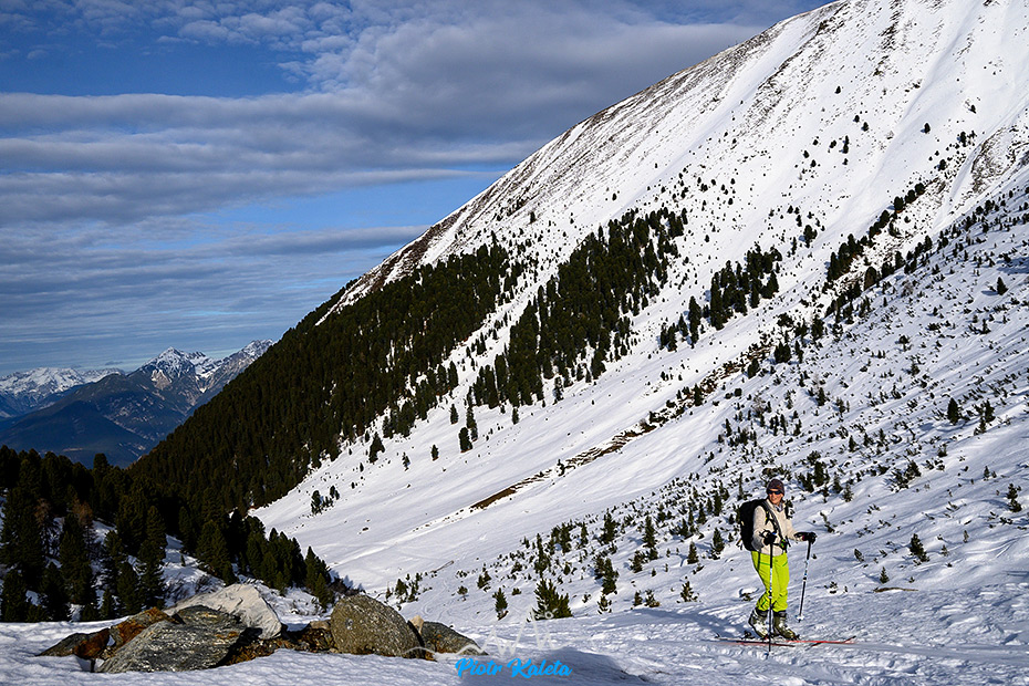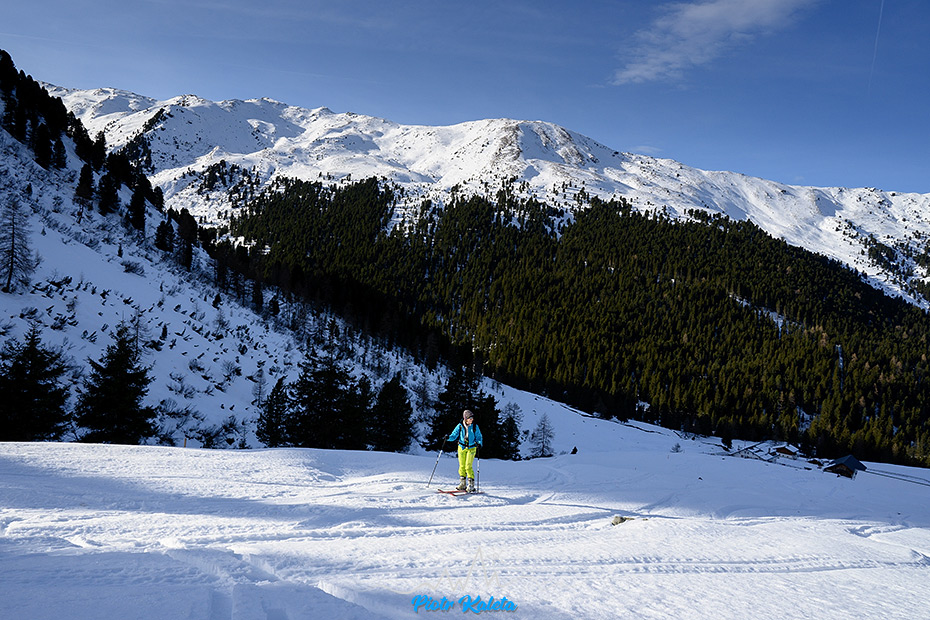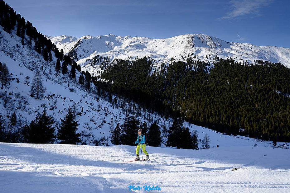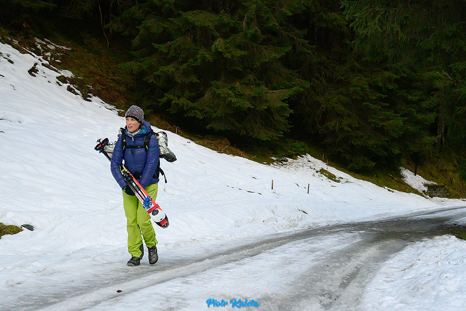 Pierwszy kilometr od parkingu w Grinzes wygląda tak jak poniżej – prawie jak na wiosennych turach gdzie śniegu trzeba szukać wyżej niż zwykle.