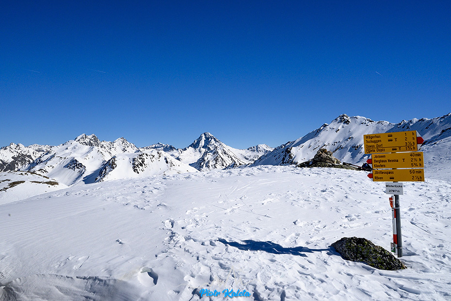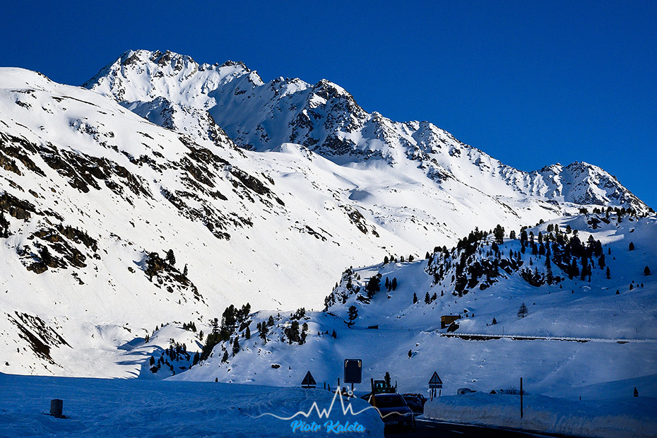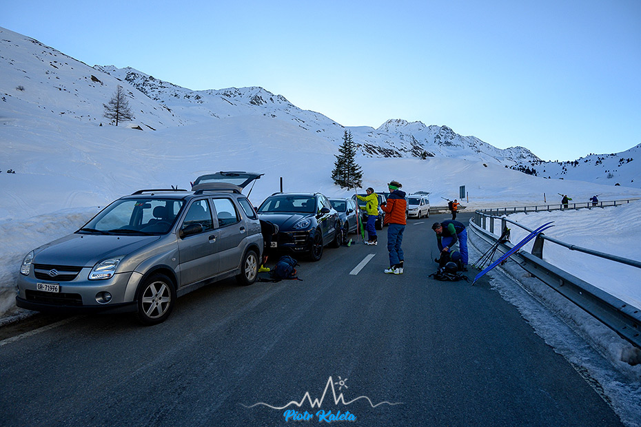 Możliwości więcej niż czasu i sił, wybieramy okolicę Flüela Pass. Sama przełęcz jest zamknięta dla samochodów i powyżej ostatnich zabudowań kawałek odśnieżonej drogi robi za parking.